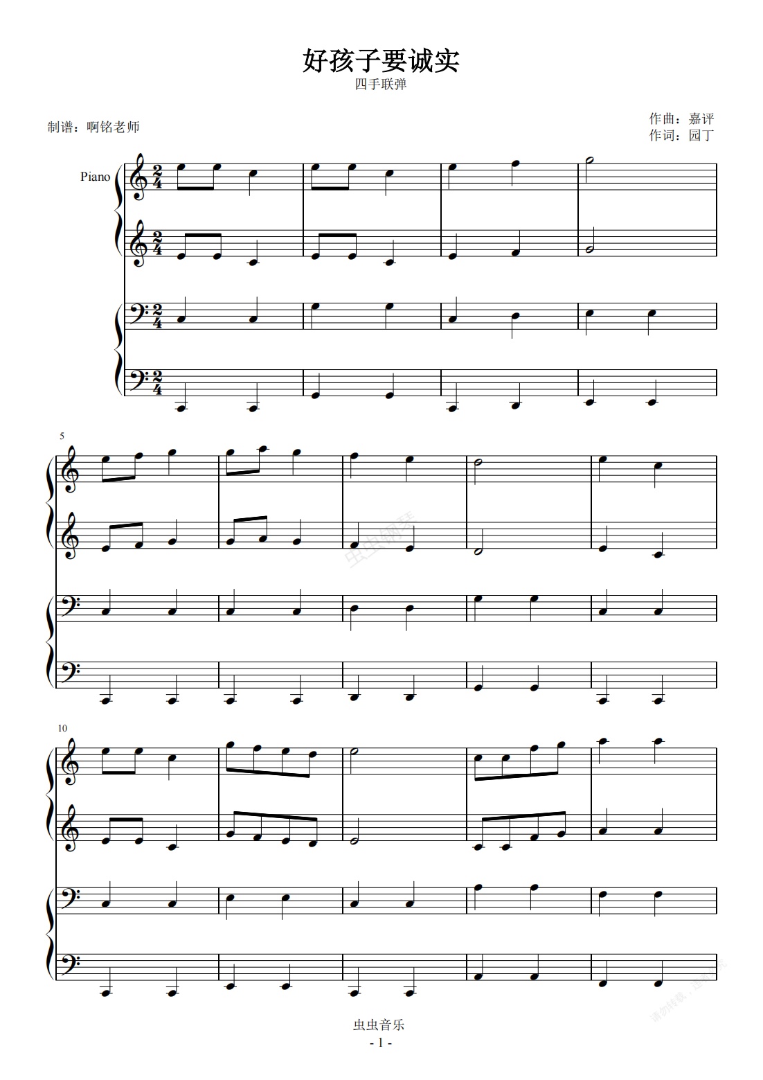 钢琴谱:好孩子要诚实 【四手联弹 小汤2】