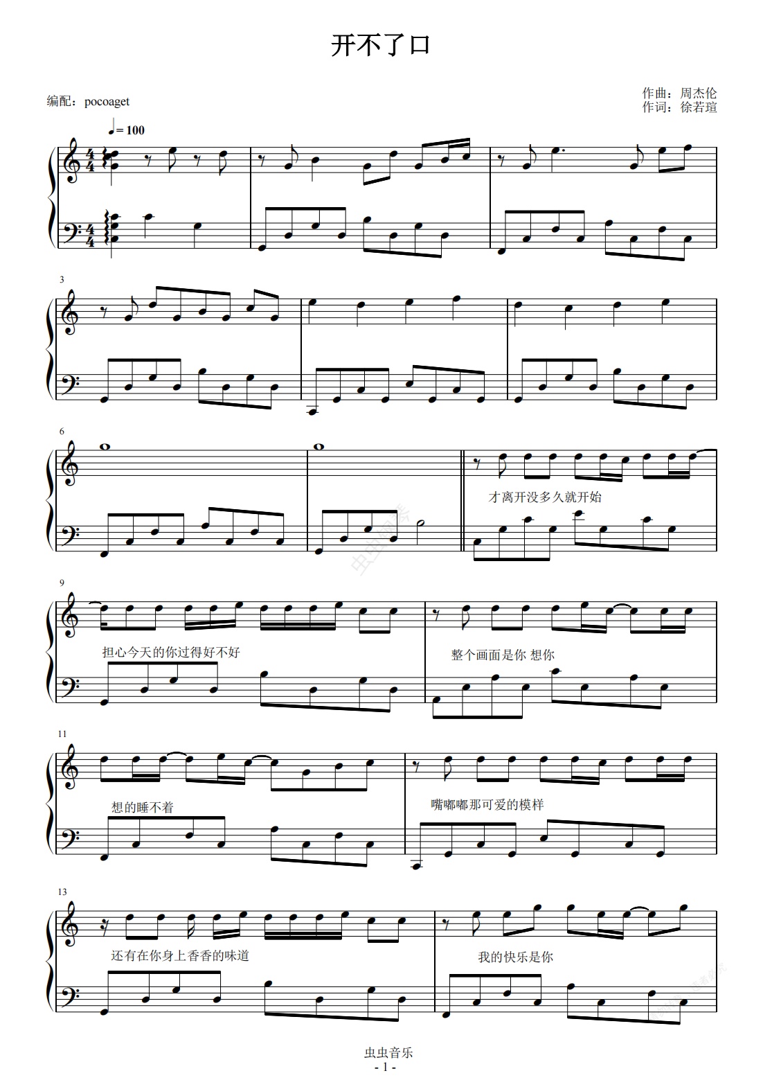 钢琴谱:周杰伦《开不了口》带歌词(poc编配)周董初学者系列