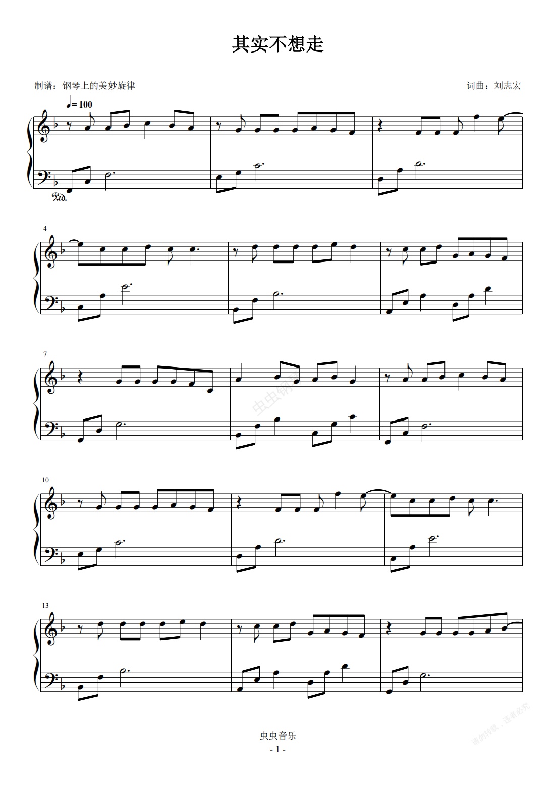 钢琴谱:其实不想走 简易版 周华健