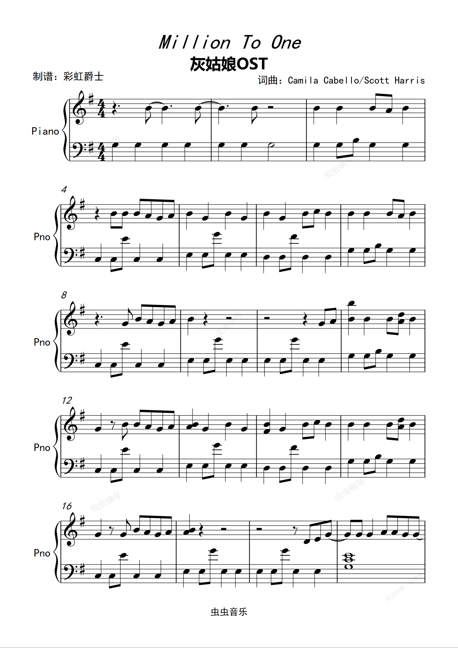 钢琴谱:Million To One-灰姑娘OST-Cinderella OST 简单版 G调
