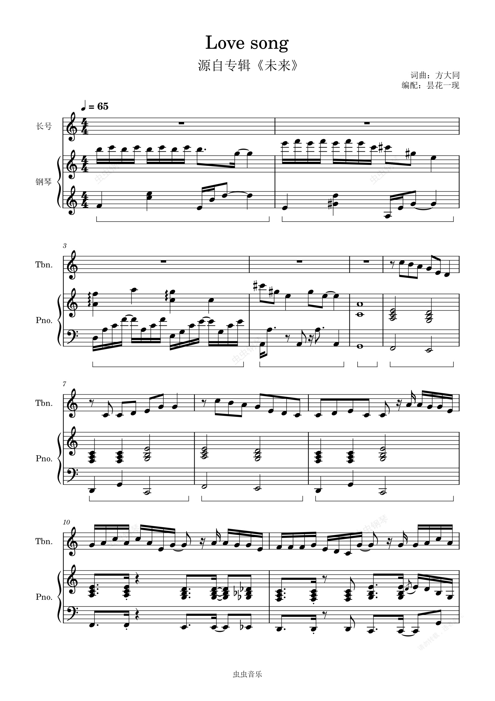 钢琴谱:Love song C大调和弦弹唱谱 方大同