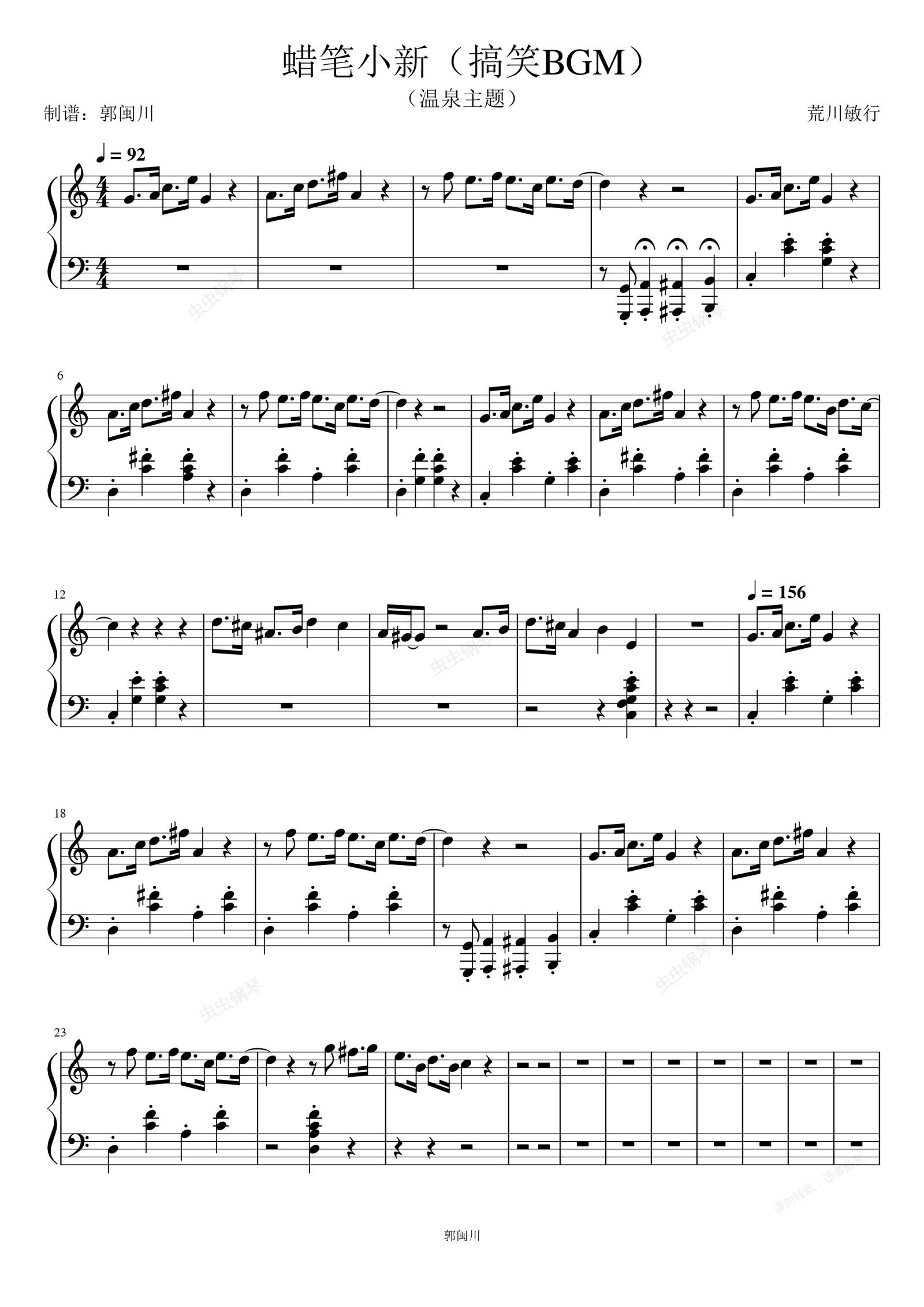 钢琴谱:蜡笔小新(温泉主题搞笑BGM)