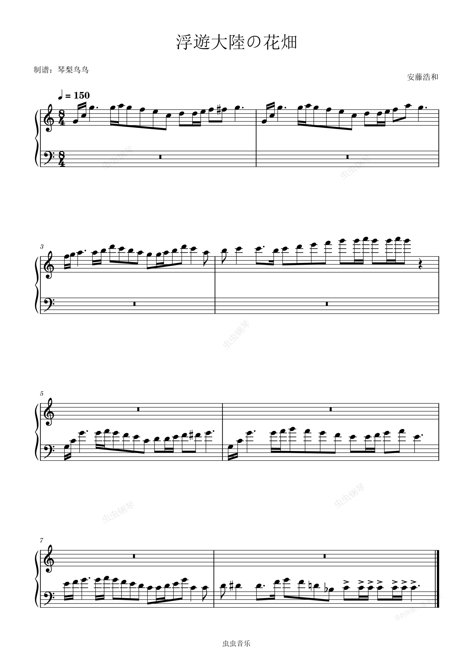 钢琴谱:浮遊大陸の花畑