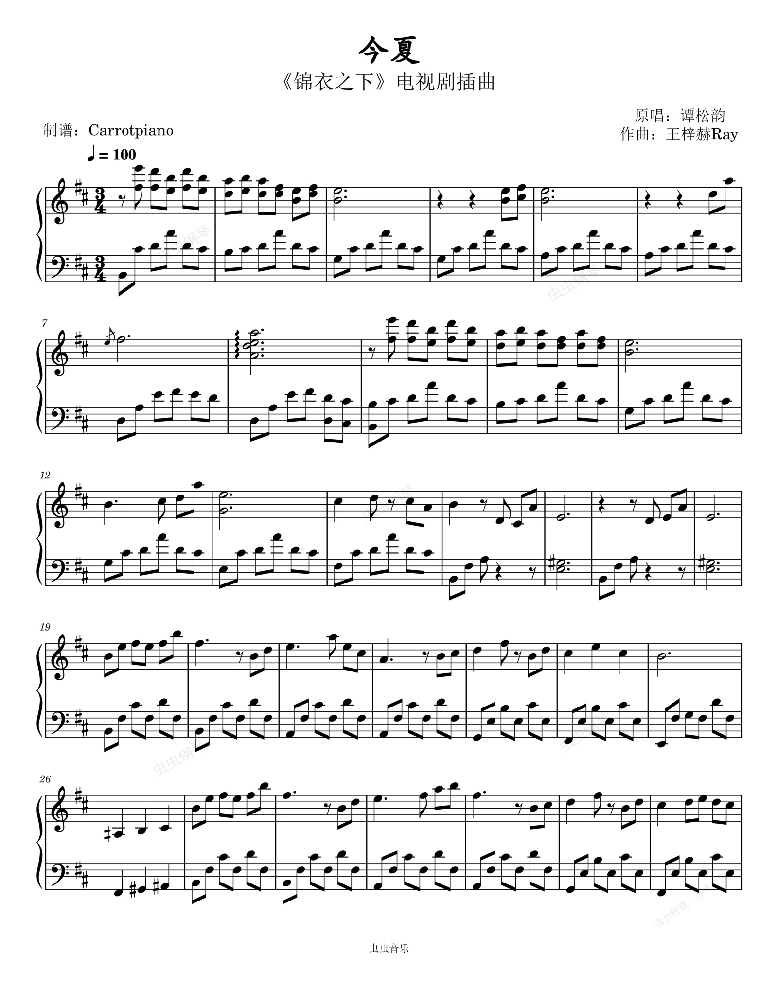 钢琴谱:今夏-谭松韵 (锦衣之下 插曲)