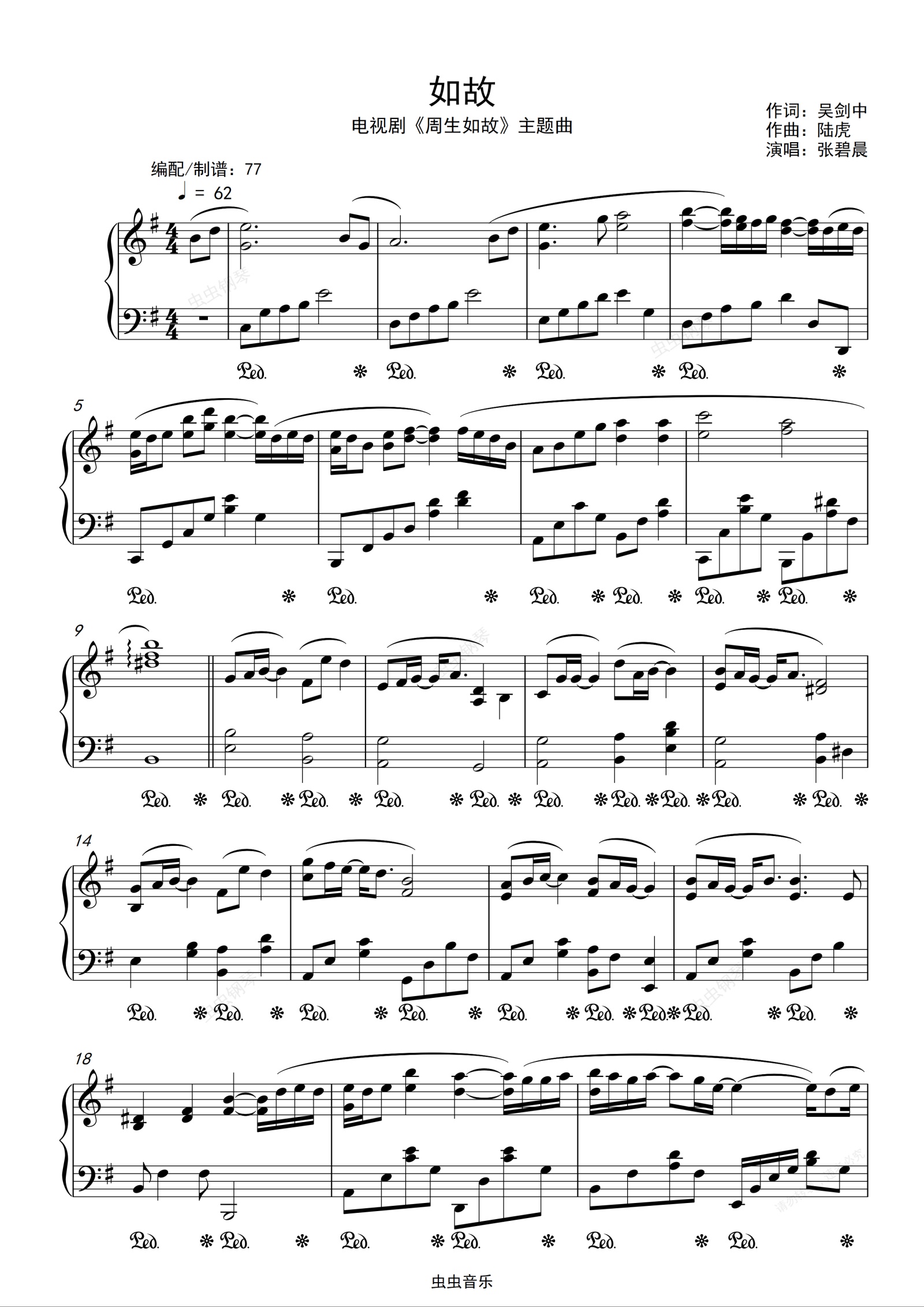 钢琴谱:张碧晨-《如故》电视剧{周生如故}主题曲 钢琴独奏