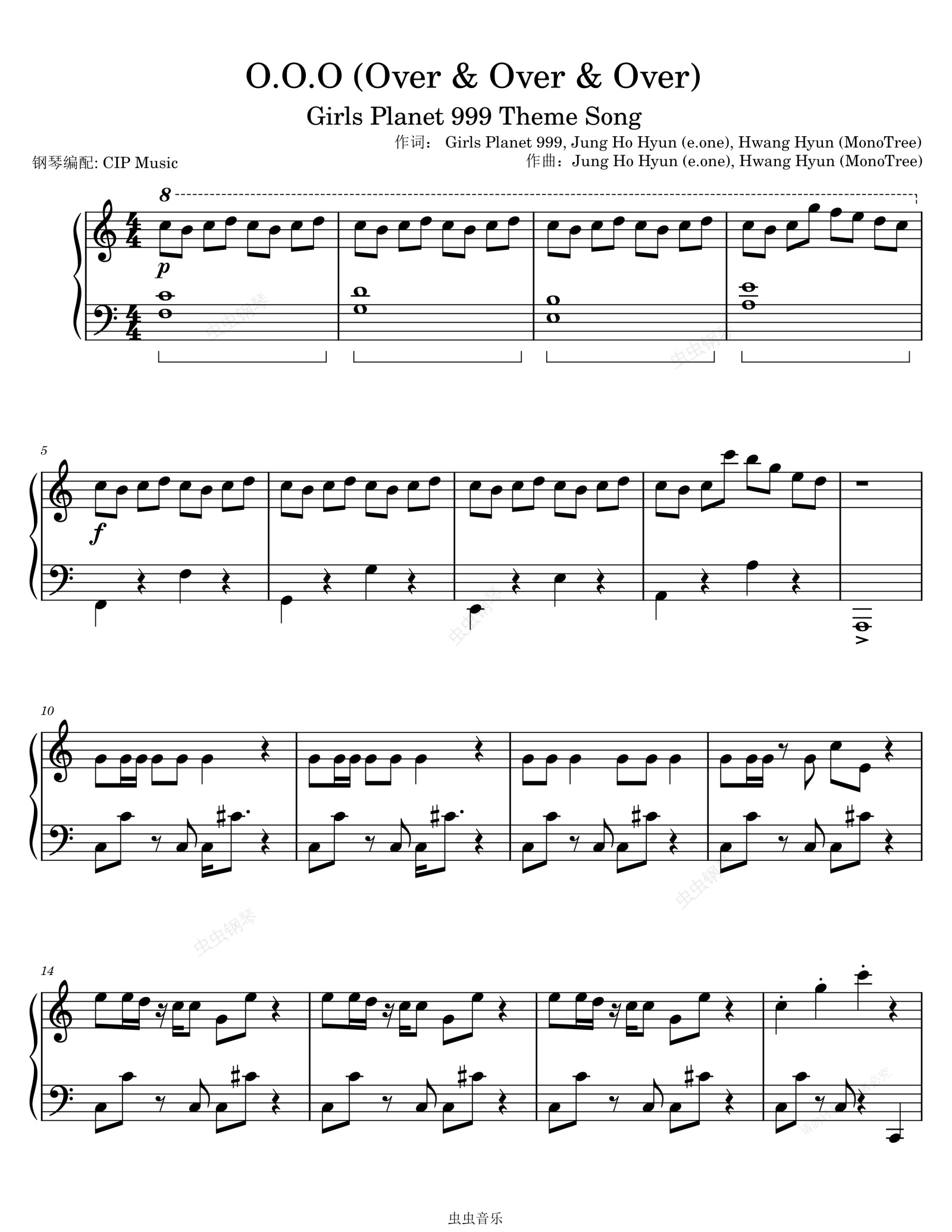 钢琴谱:《O.O.O (Over & Over & Over)》Girls Planet 999 主题曲C调简易版