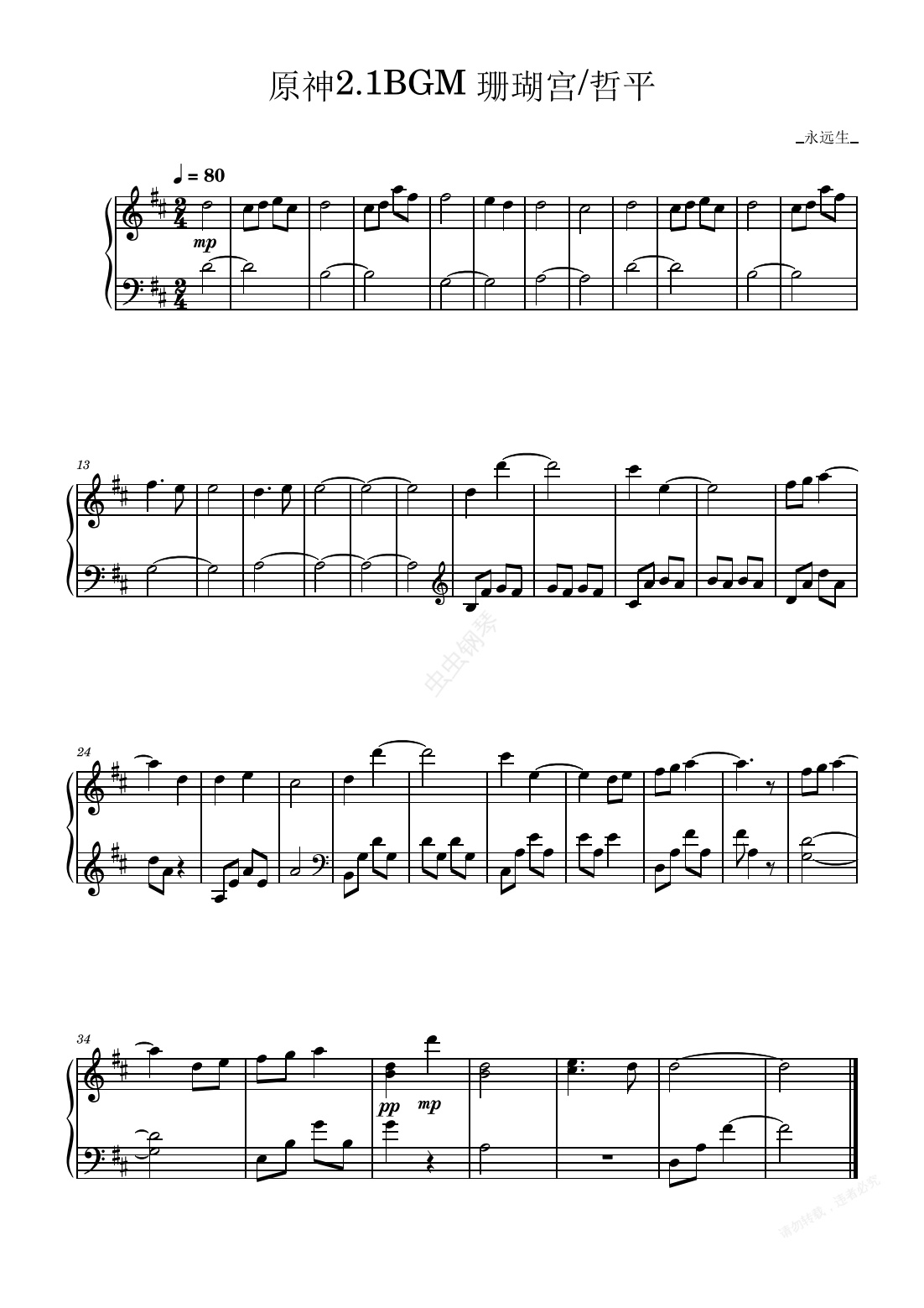 钢琴谱:原神2.1BGM 珊瑚宫/哲平——永远生