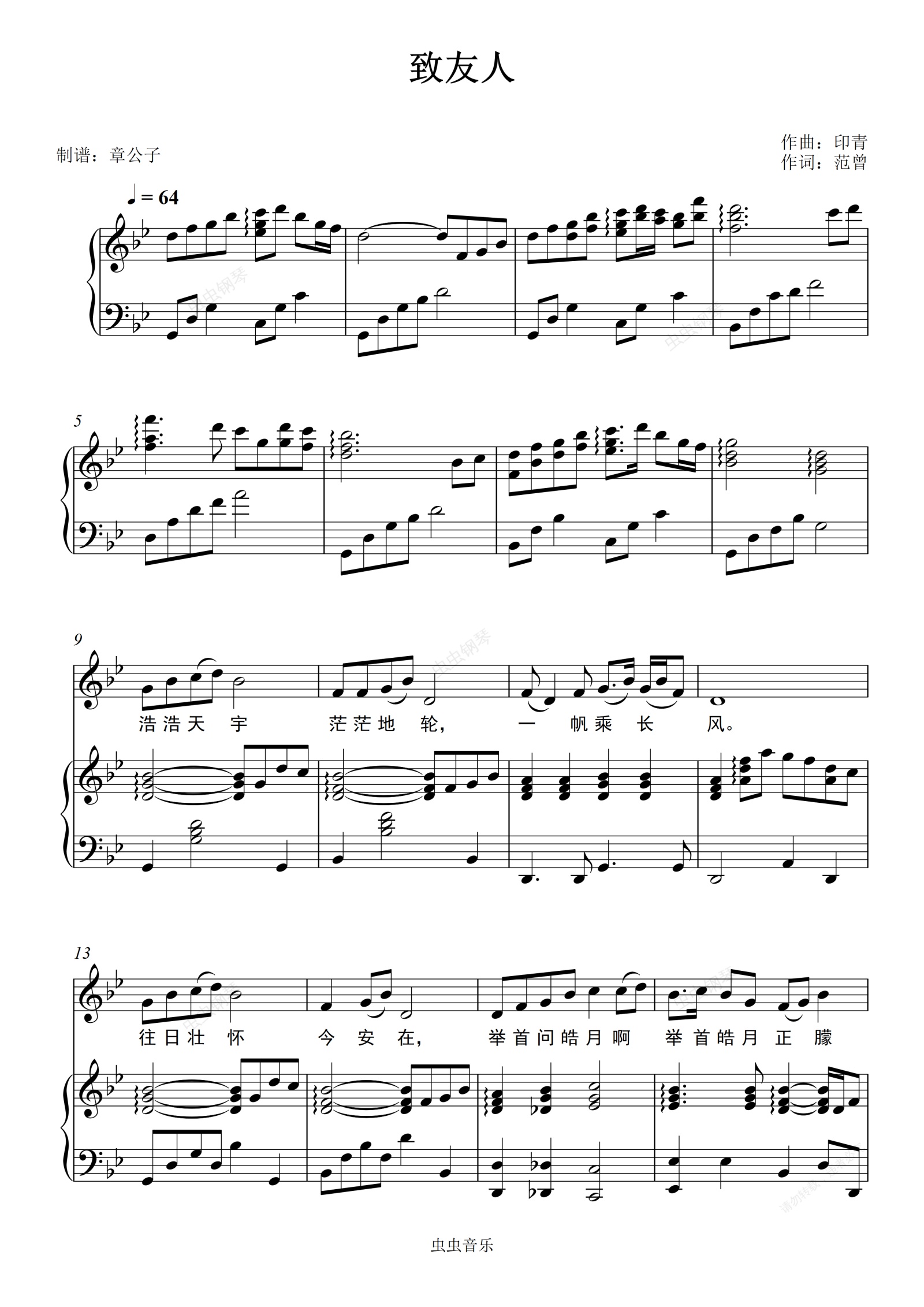 钢琴谱:《致友人》- 廖昌永 弹唱(伴奏)谱