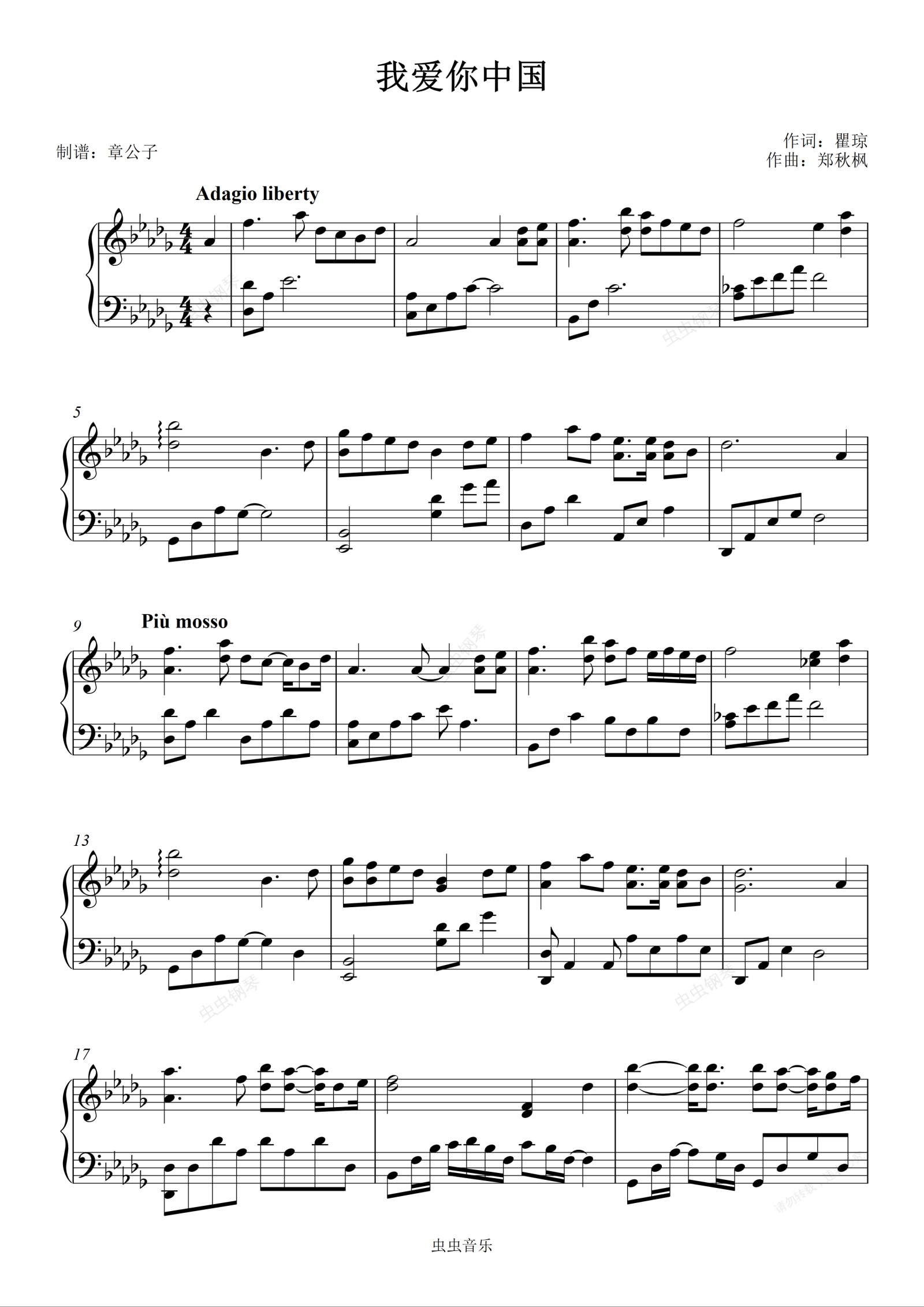钢琴谱:《我爱你中国》钢琴版 - 徐鲤 独奏谱