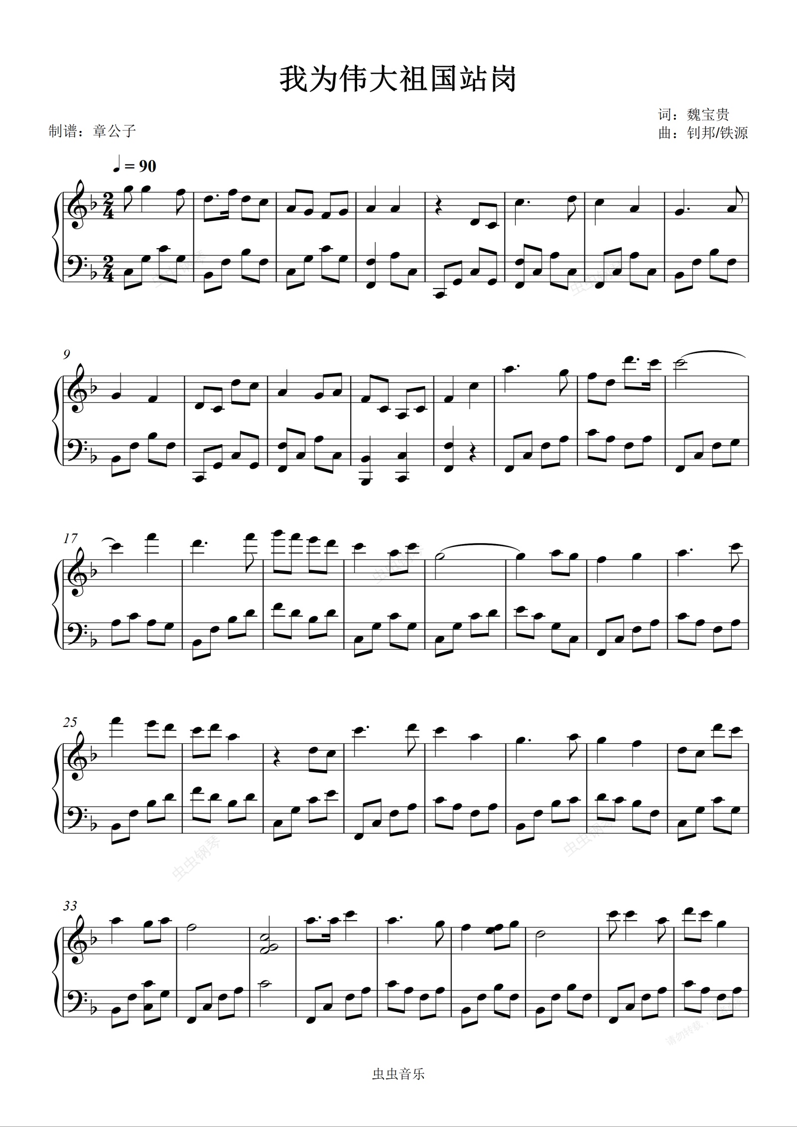 钢琴谱:《我为伟大祖国站岗》 F调独奏谱