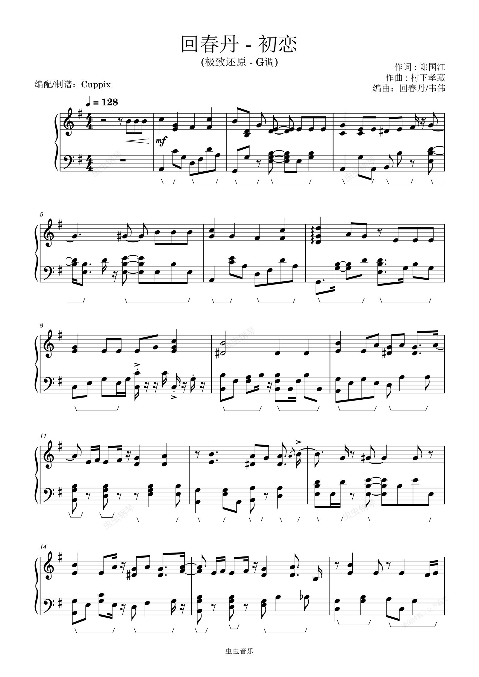 钢琴谱:回春丹《初恋》Cuppix编配-极致还原-G调版