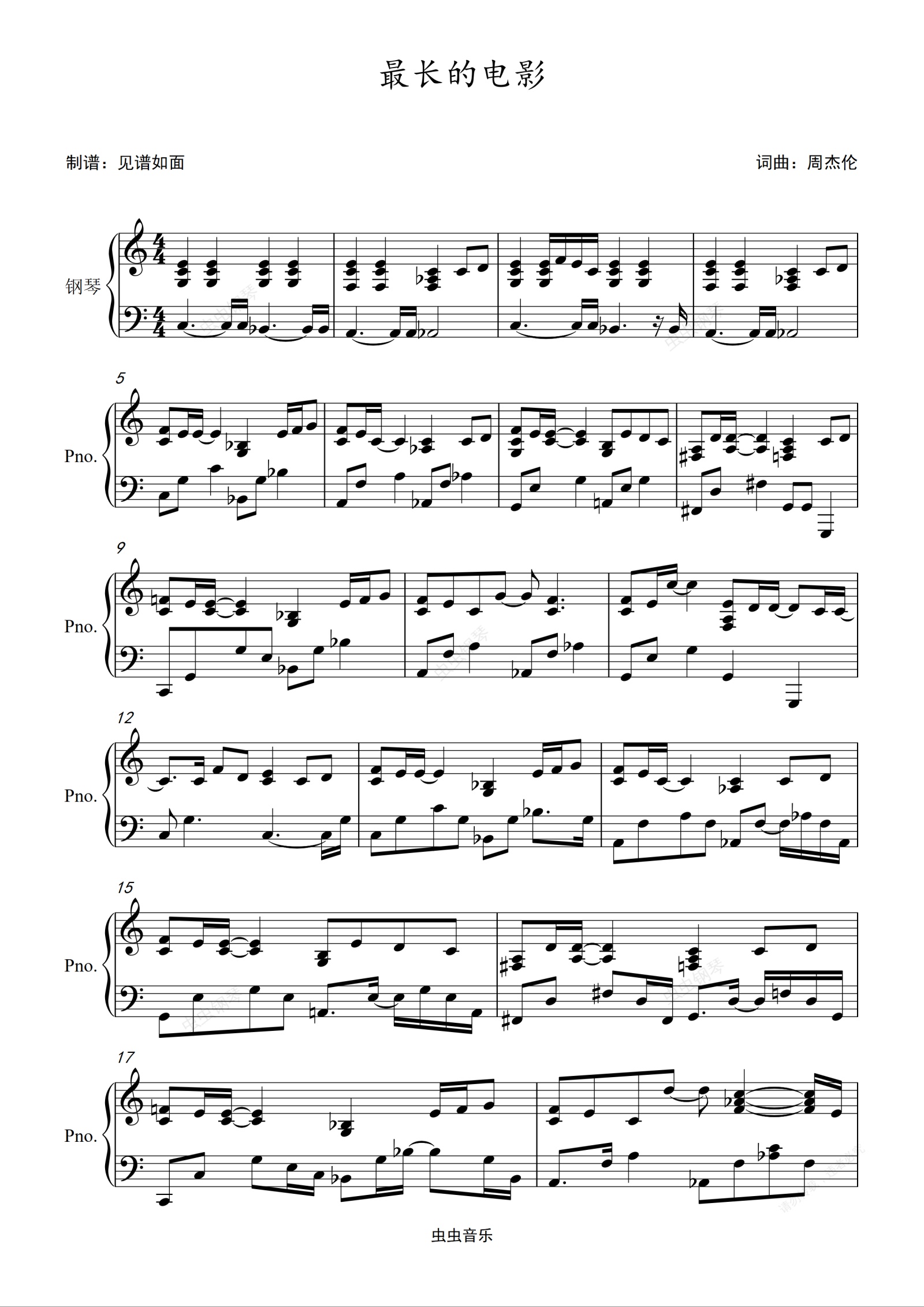 钢琴谱:周杰伦—最长的电影【C调进阶】