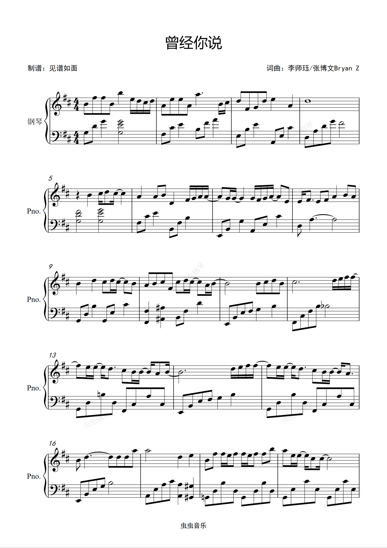 钢琴谱:赵乃吉—曾经你说【原调初级】