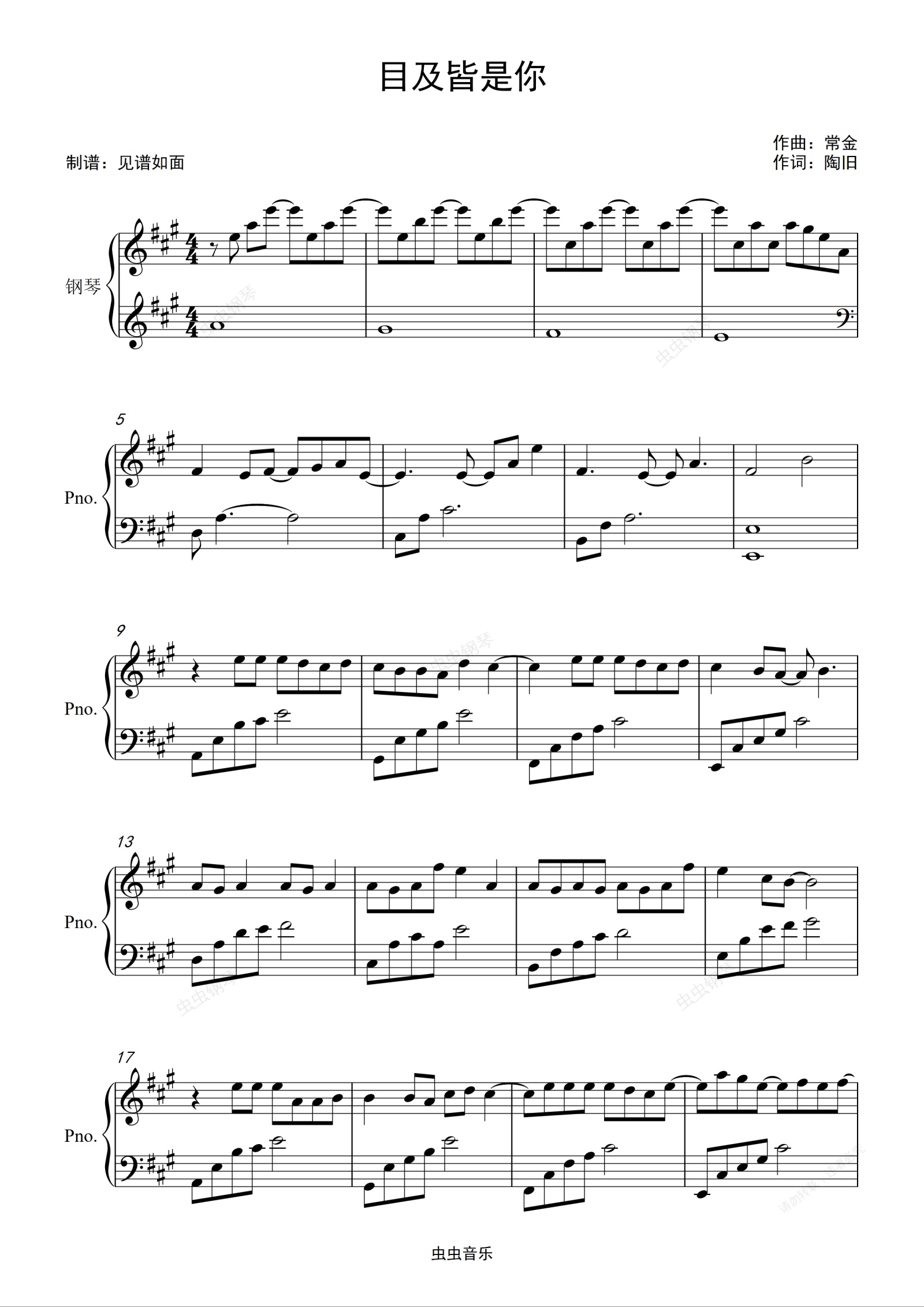 钢琴谱:小蓝背心—目及皆是你【原调初级】