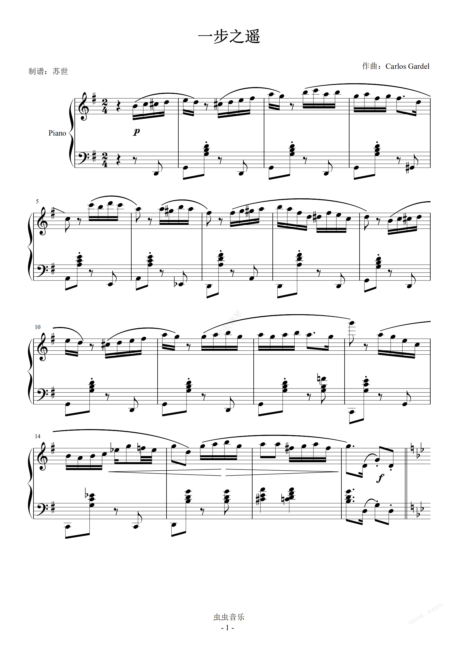 钢琴谱:Por una Cabeza(一步之遥)——电影《闻香识女人》插曲