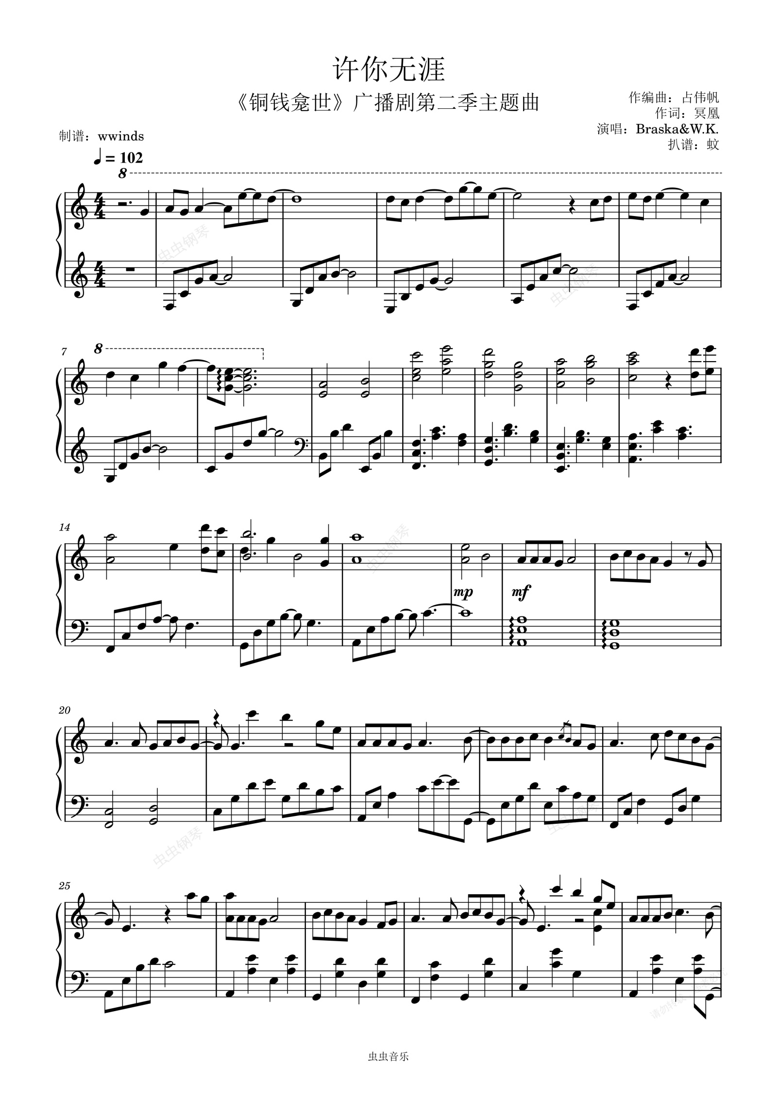 钢琴谱:【铜钱龛世广播剧】《许你无涯》