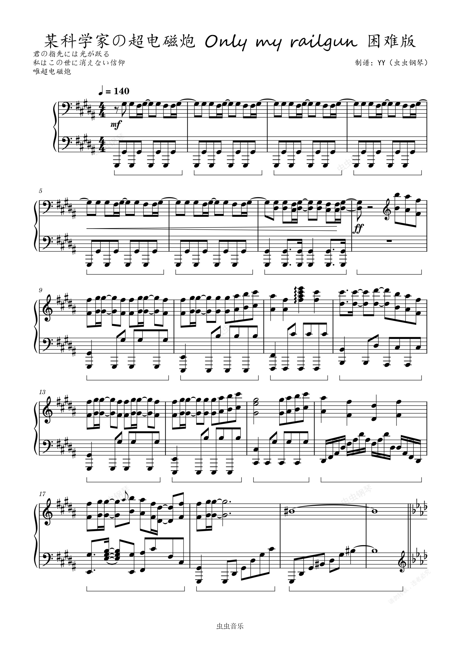 钢琴谱:Only my railgun困难版(某科学の超电磁炮)