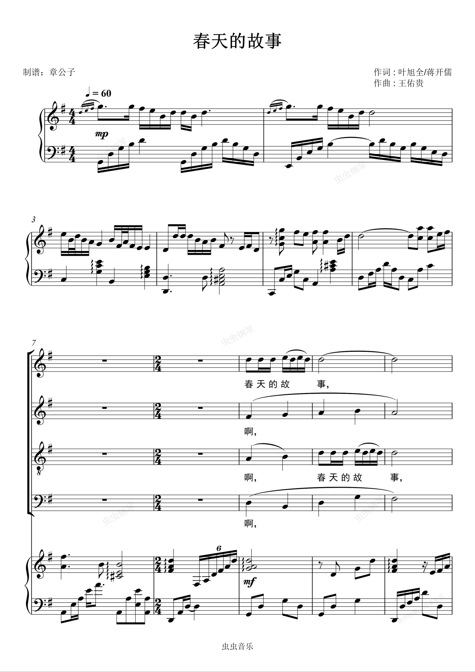 钢琴谱:《春天的故事》混声合唱伴奏正谱 (司徒汉编合唱版)