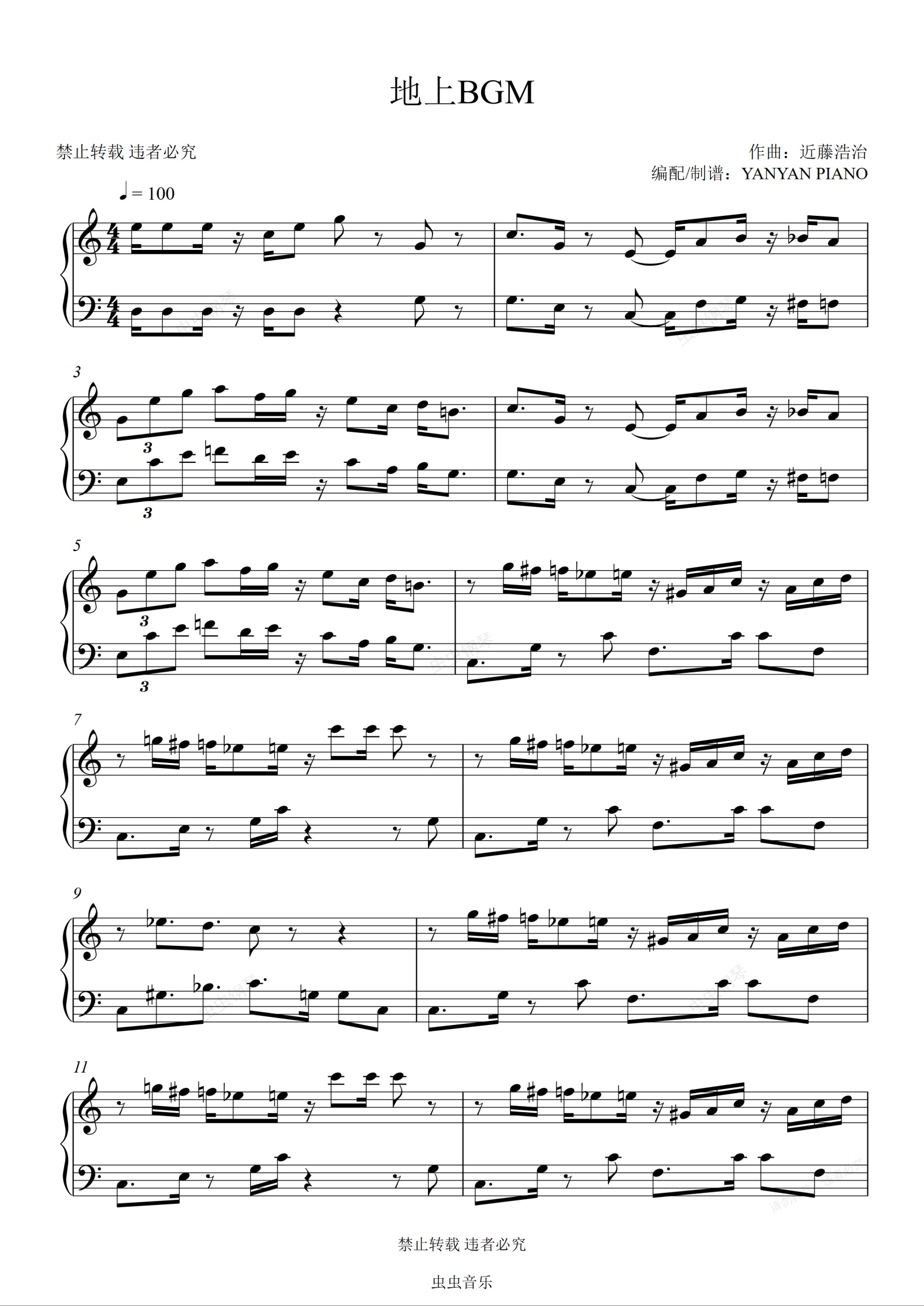 钢琴谱:好听易弹【超级马里奥兄弟 超级玛丽主题曲】第一关地上BGM