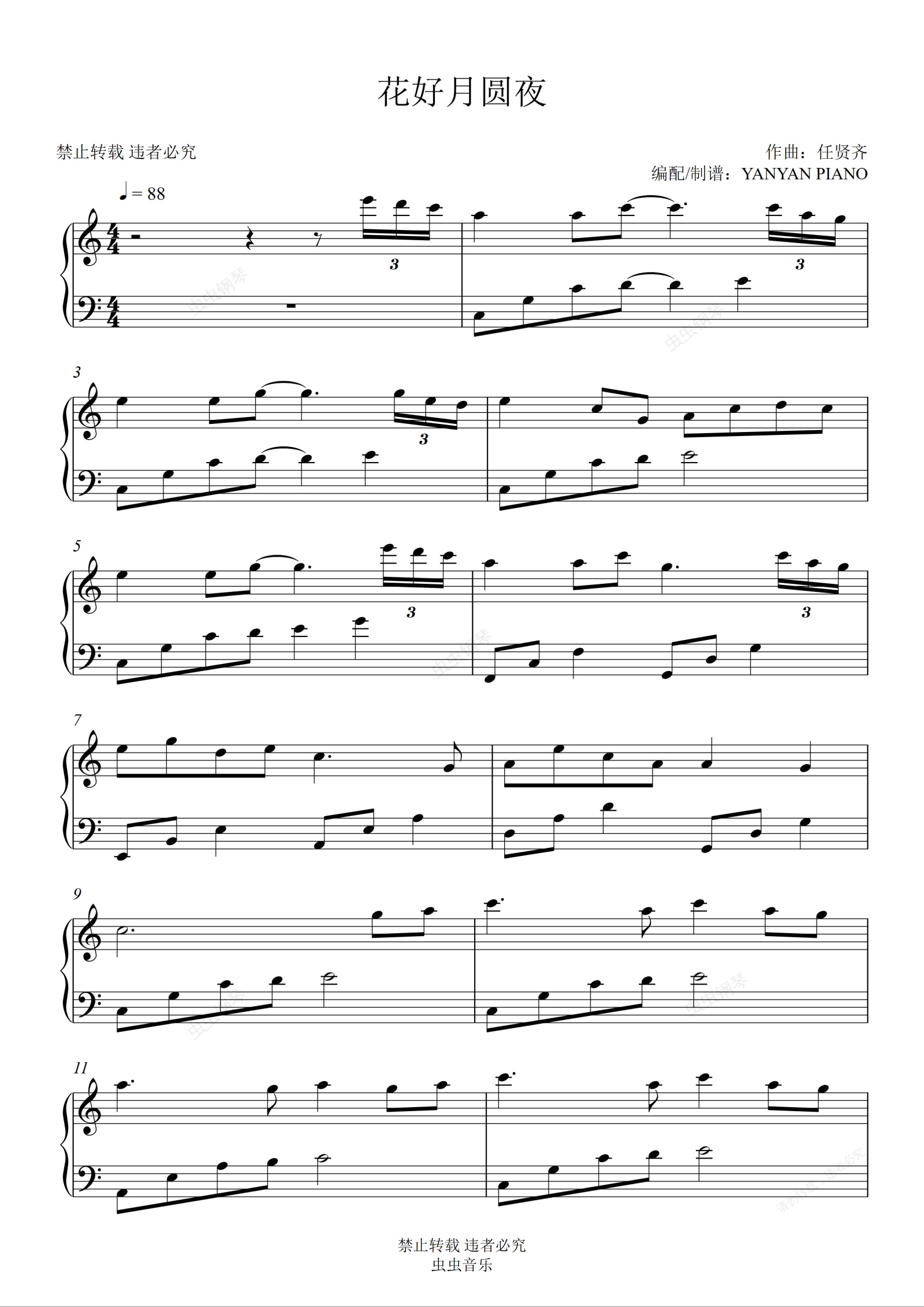 钢琴谱:好听易弹【花好月圆夜】杨千嬅 任贤齐
