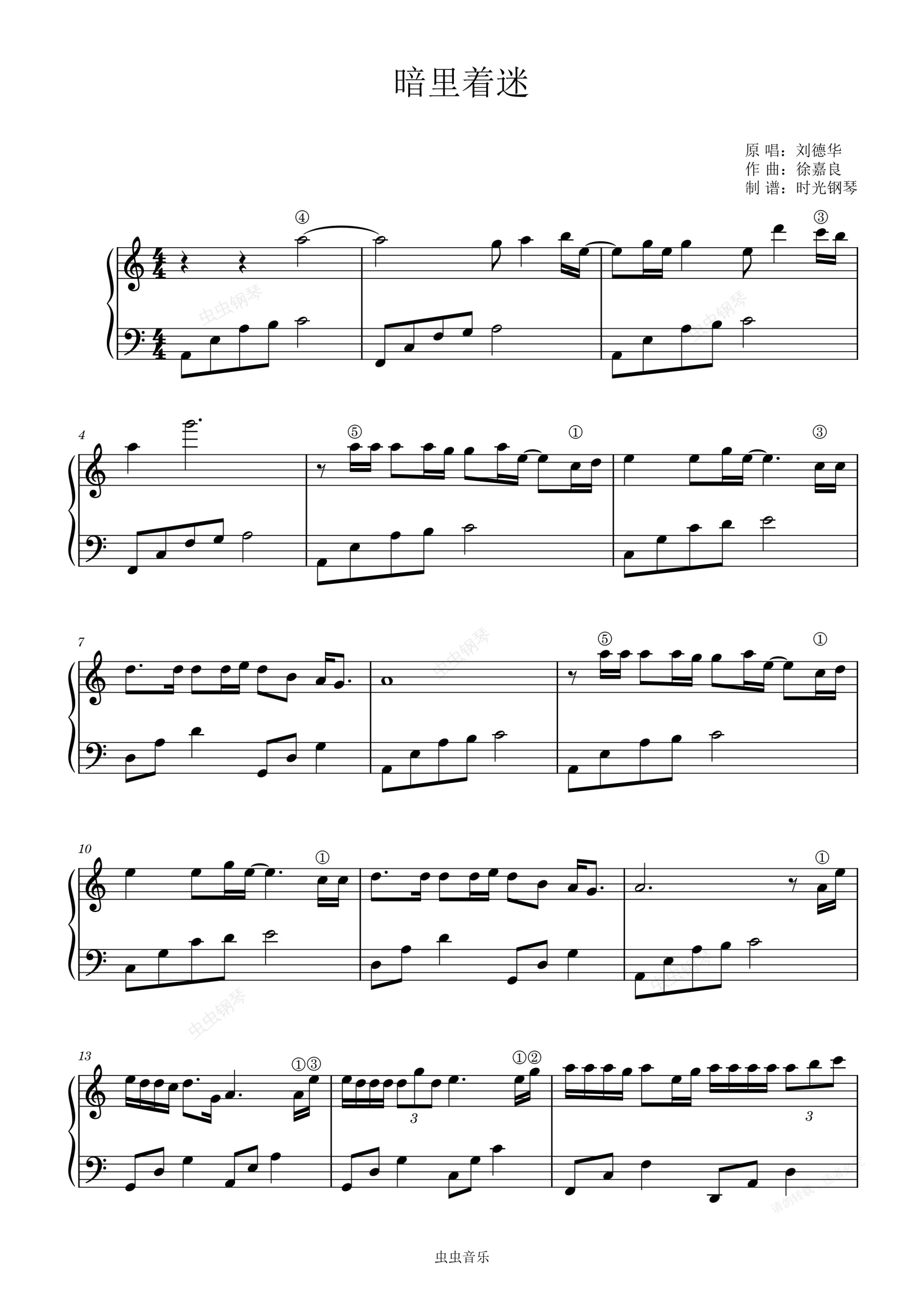 钢琴谱:暗里着迷