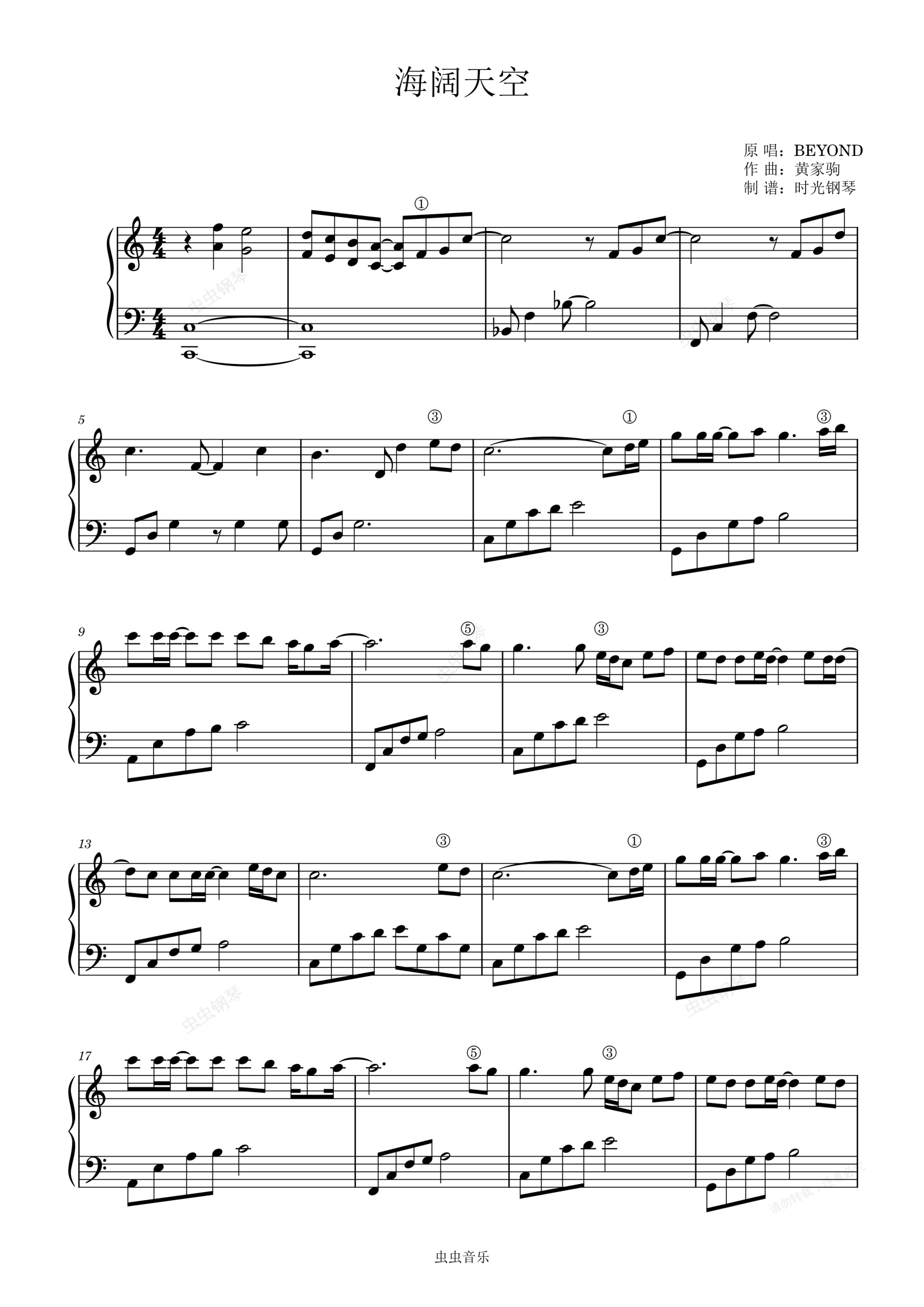 钢琴谱:海阔天空