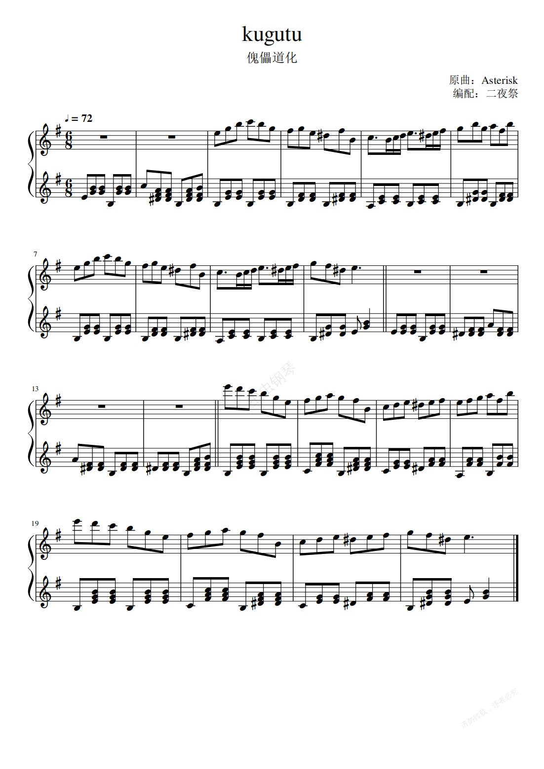 钢琴谱:【Ib / 恐怖美术馆】kugutu
