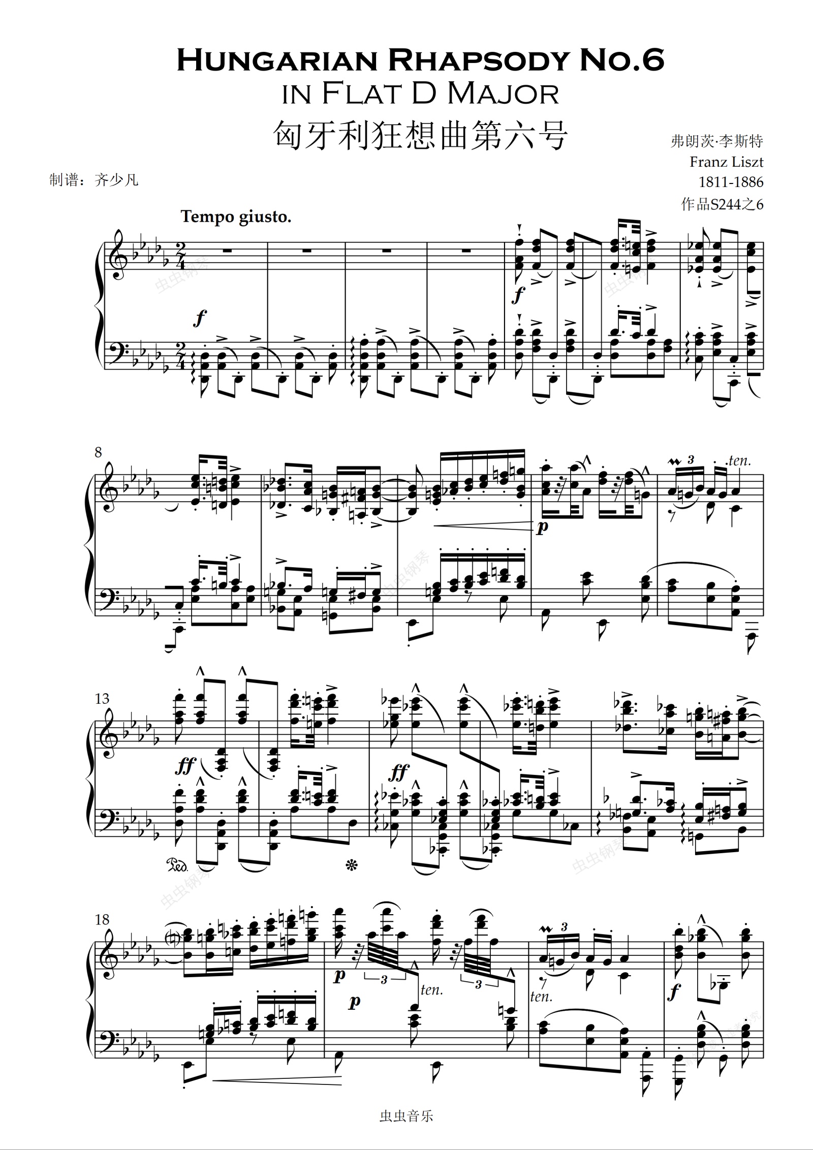 钢琴谱:匈牙利狂想曲第六号 Liszt - Hungarian Rhapsody No.6 S.244