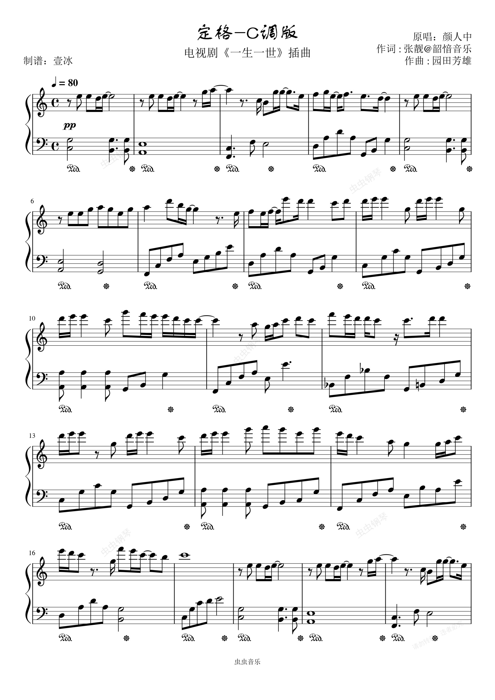 钢琴谱:定格//电视剧《一生一世》插曲-C调版