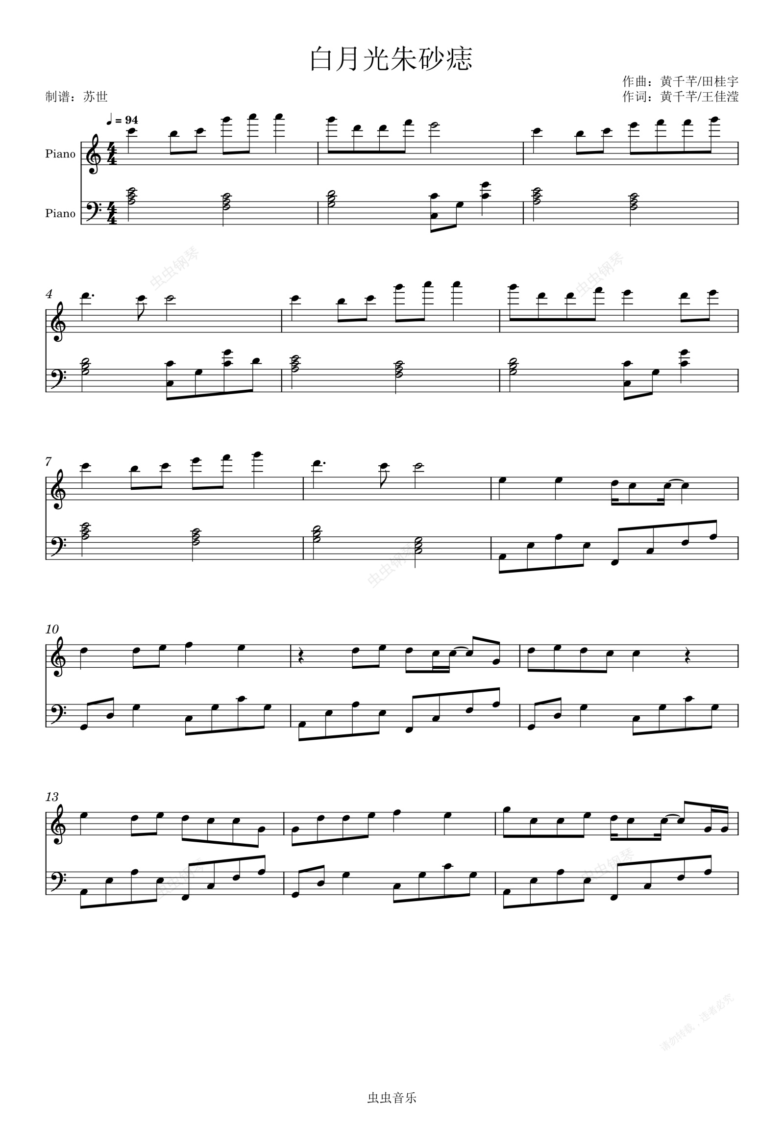 钢琴谱:白月光与朱砂痣 C调唯美简易版