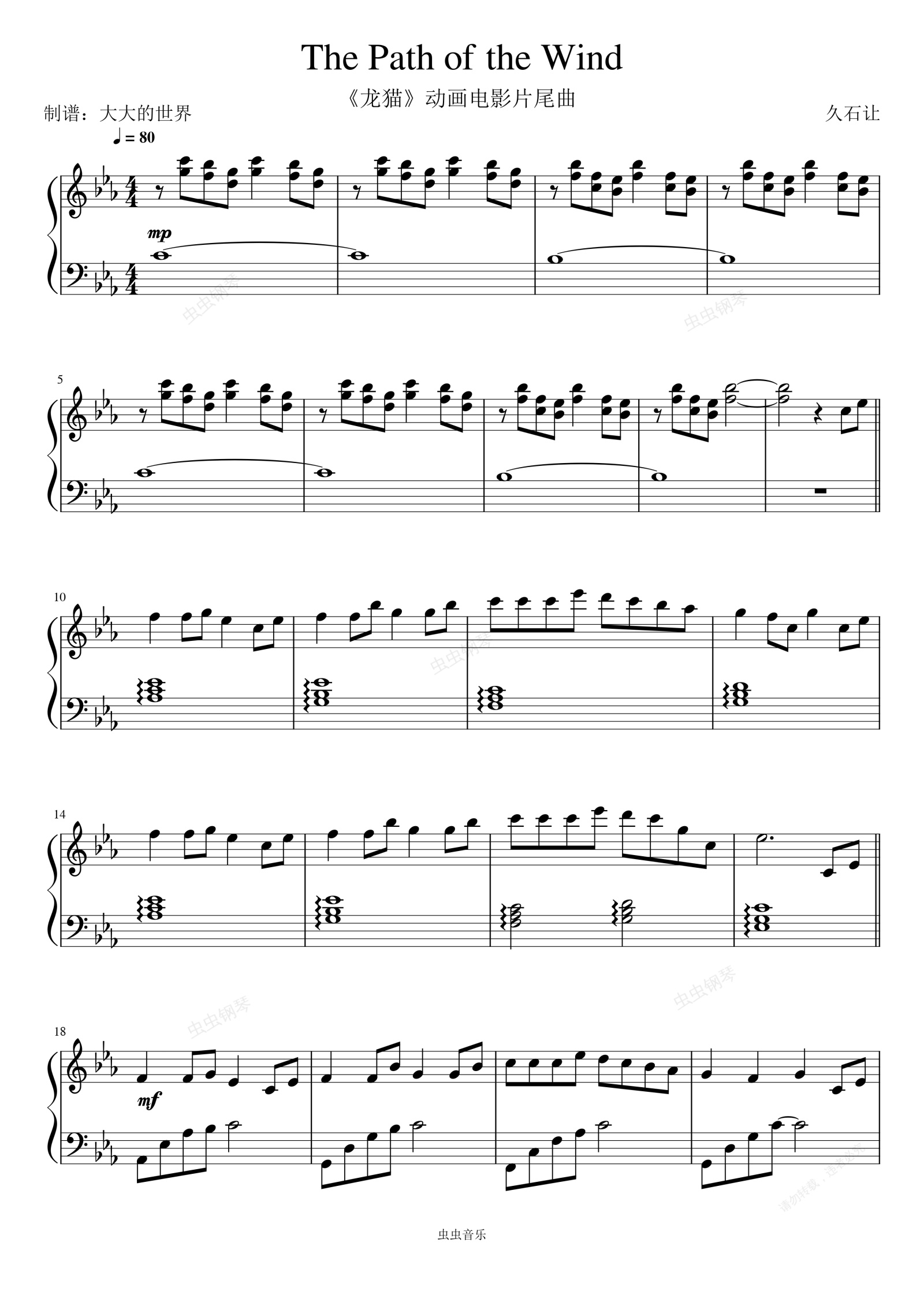 钢琴谱:The Path of the Wind 風のとおり道-《龙猫》动画电影片尾曲