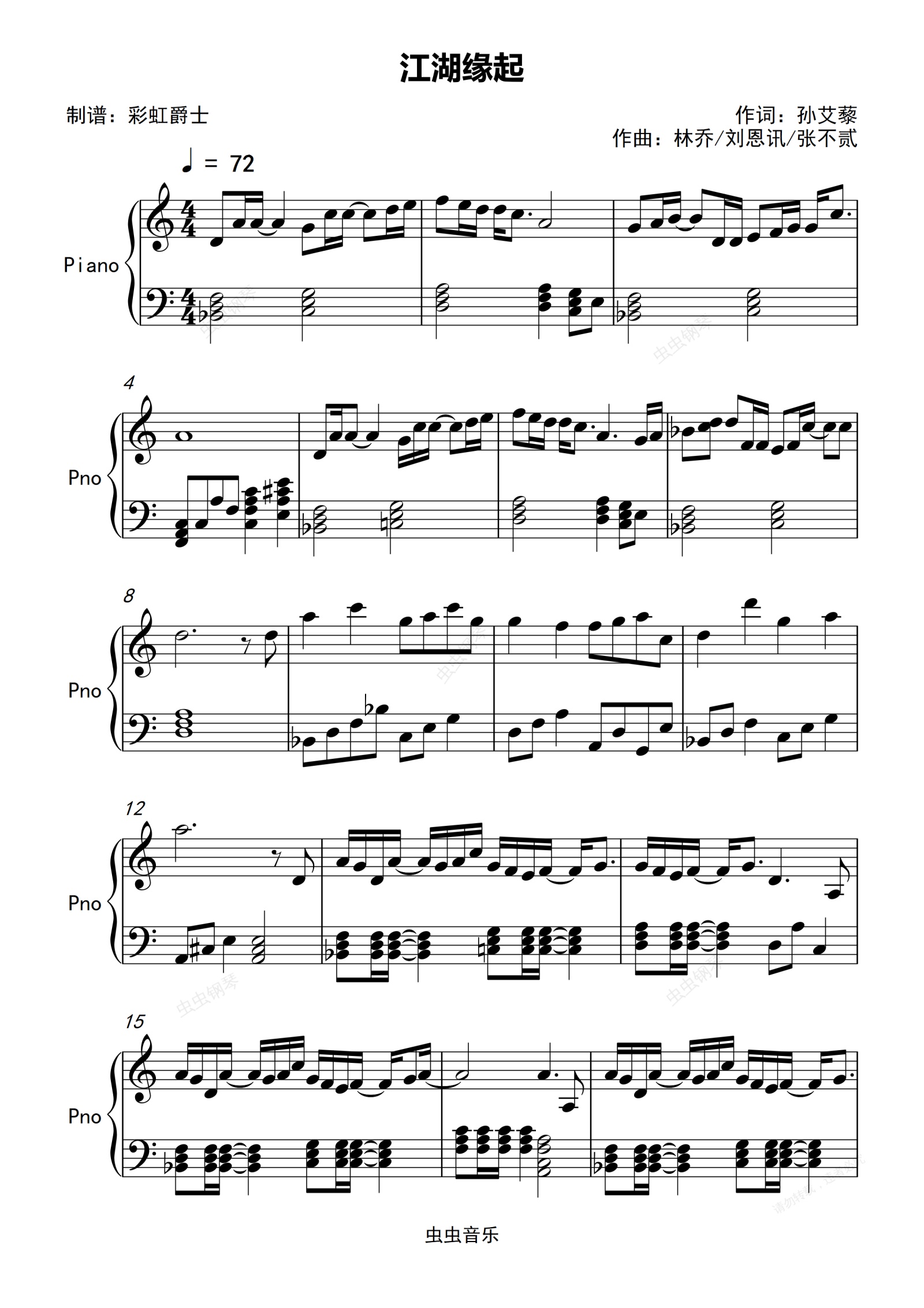 钢琴谱:江湖缘起 C调简单版 剑网3缘起主题曲 周深
