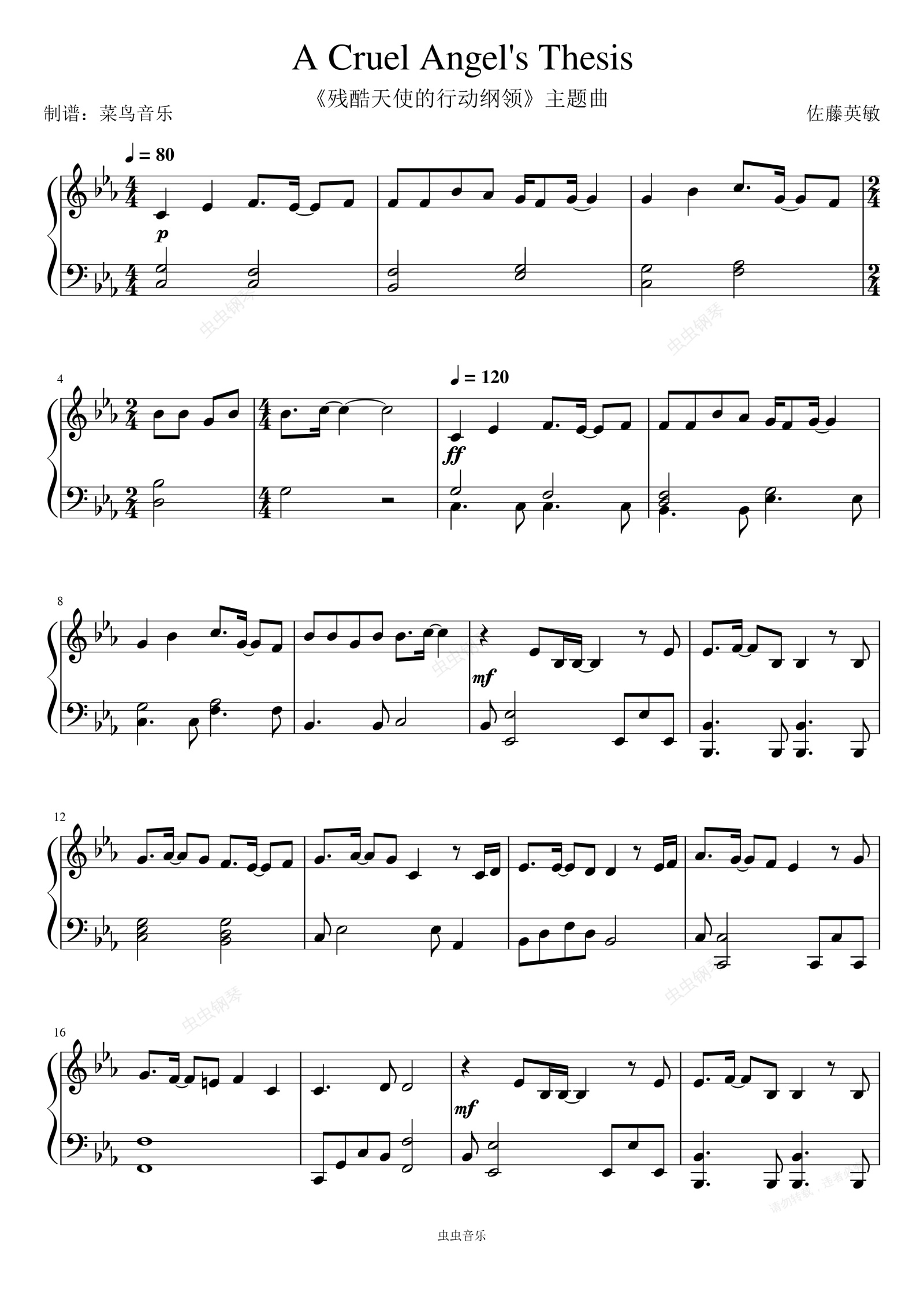 钢琴谱:A Cruel Angel's Thesis-《残酷天使的行动纲领》主题曲