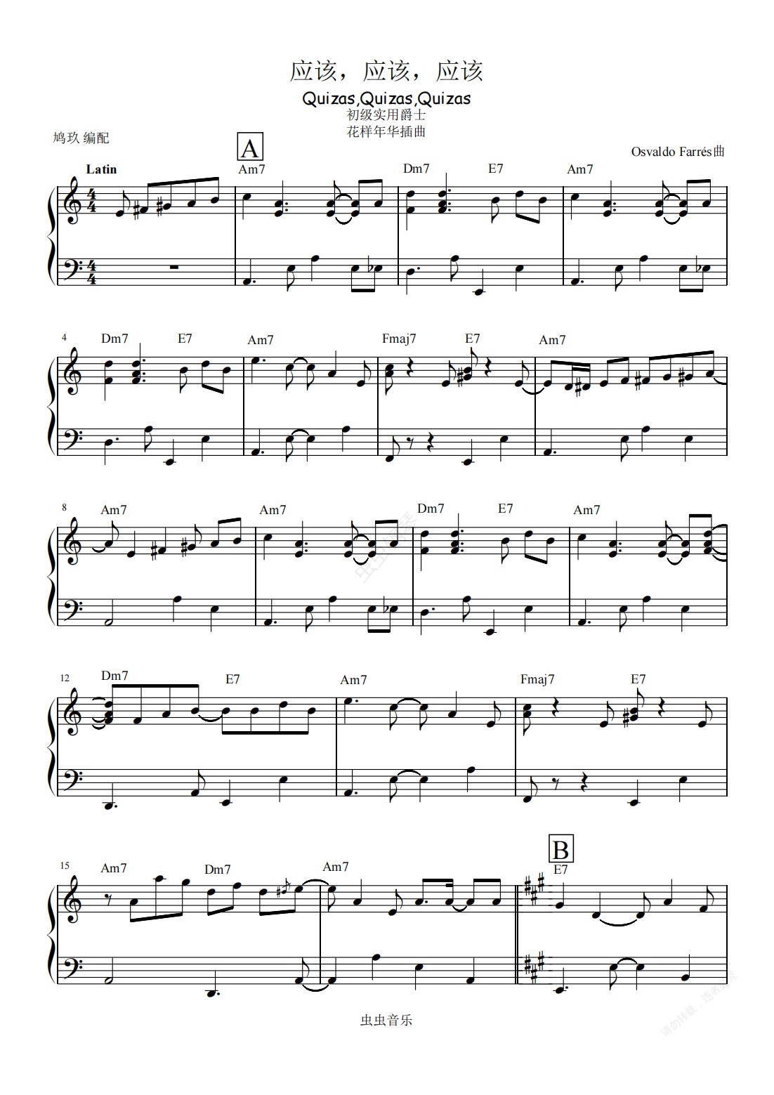 钢琴谱:quizas quizas quizas(初级爵士)花样年华插曲