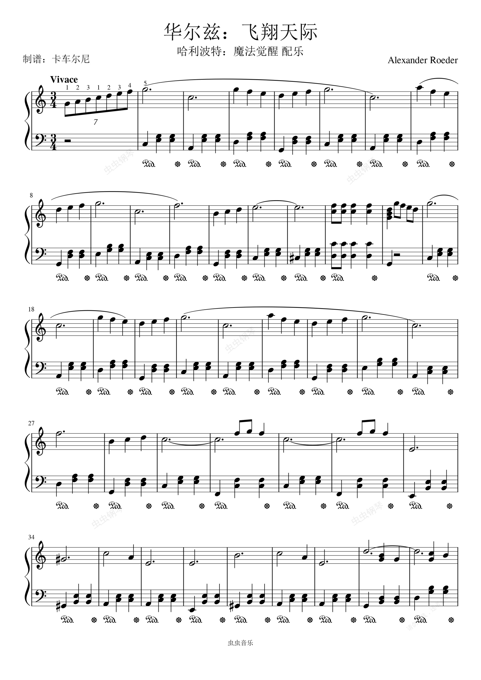 钢琴谱:【哈利波特魔法觉醒】华尔兹:飞翔天际,简易版