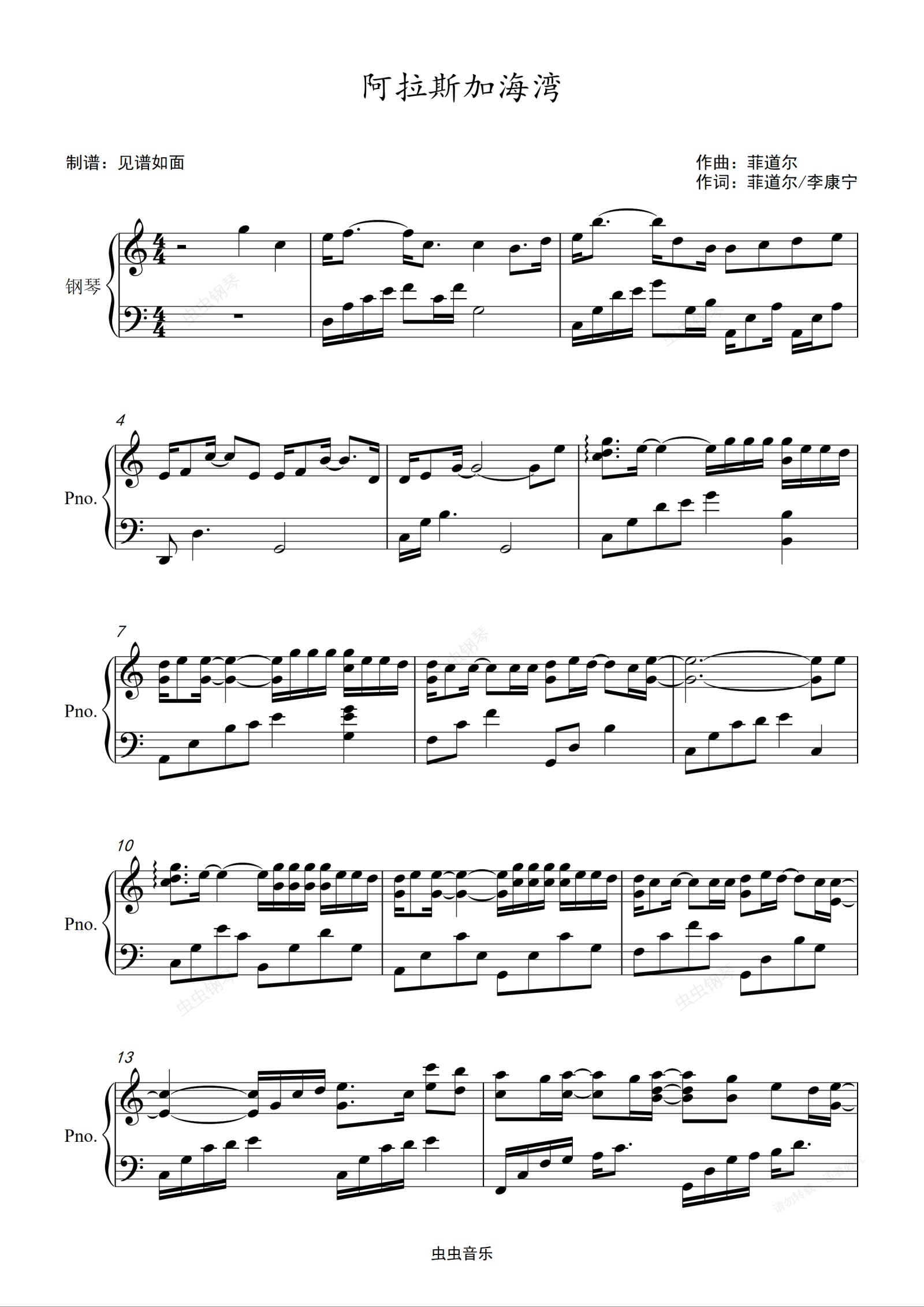 钢琴谱:蓝心羽—阿拉斯加海湾【C调进阶】