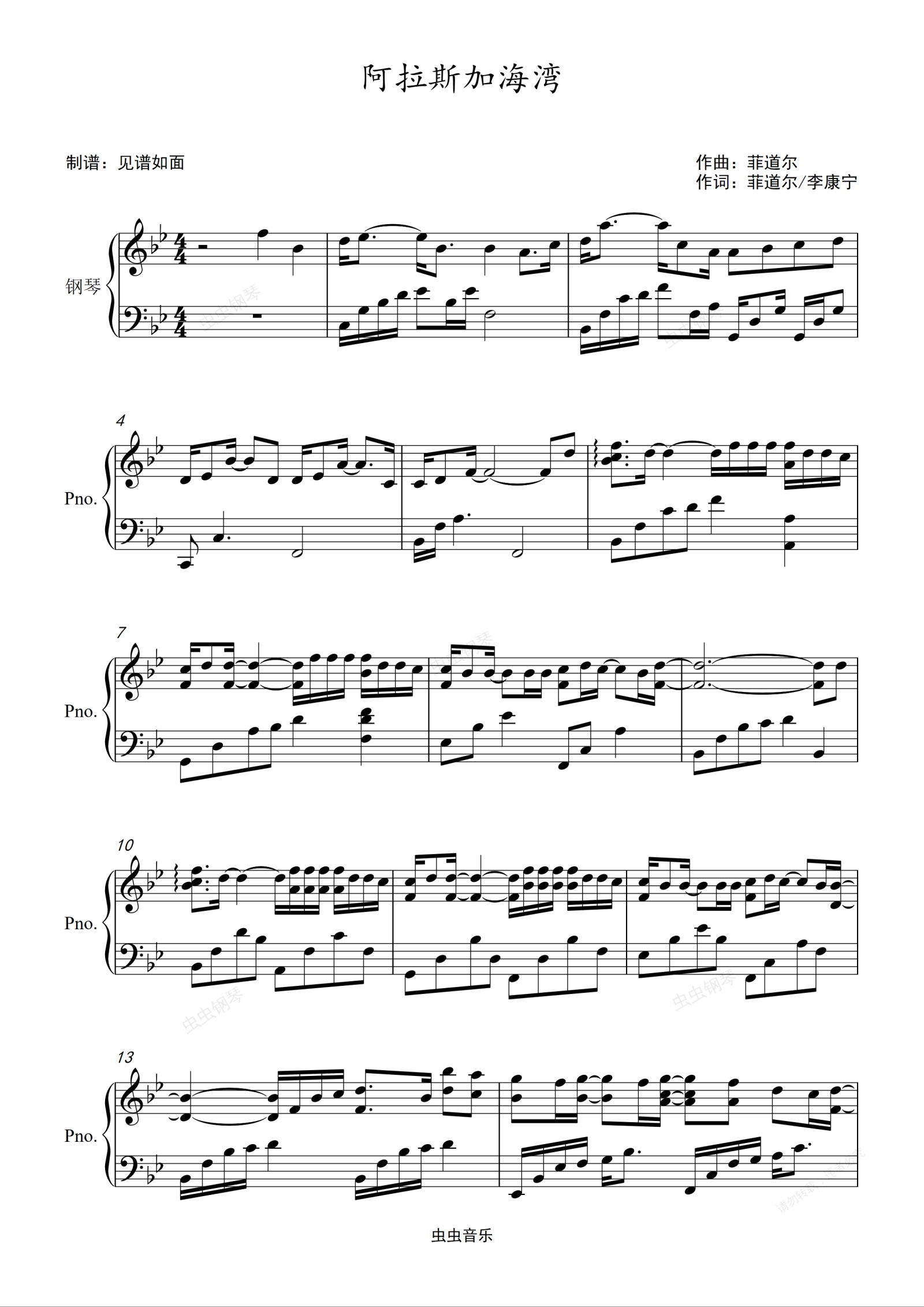 钢琴谱:蓝心羽—阿拉斯加海湾【原调进阶】