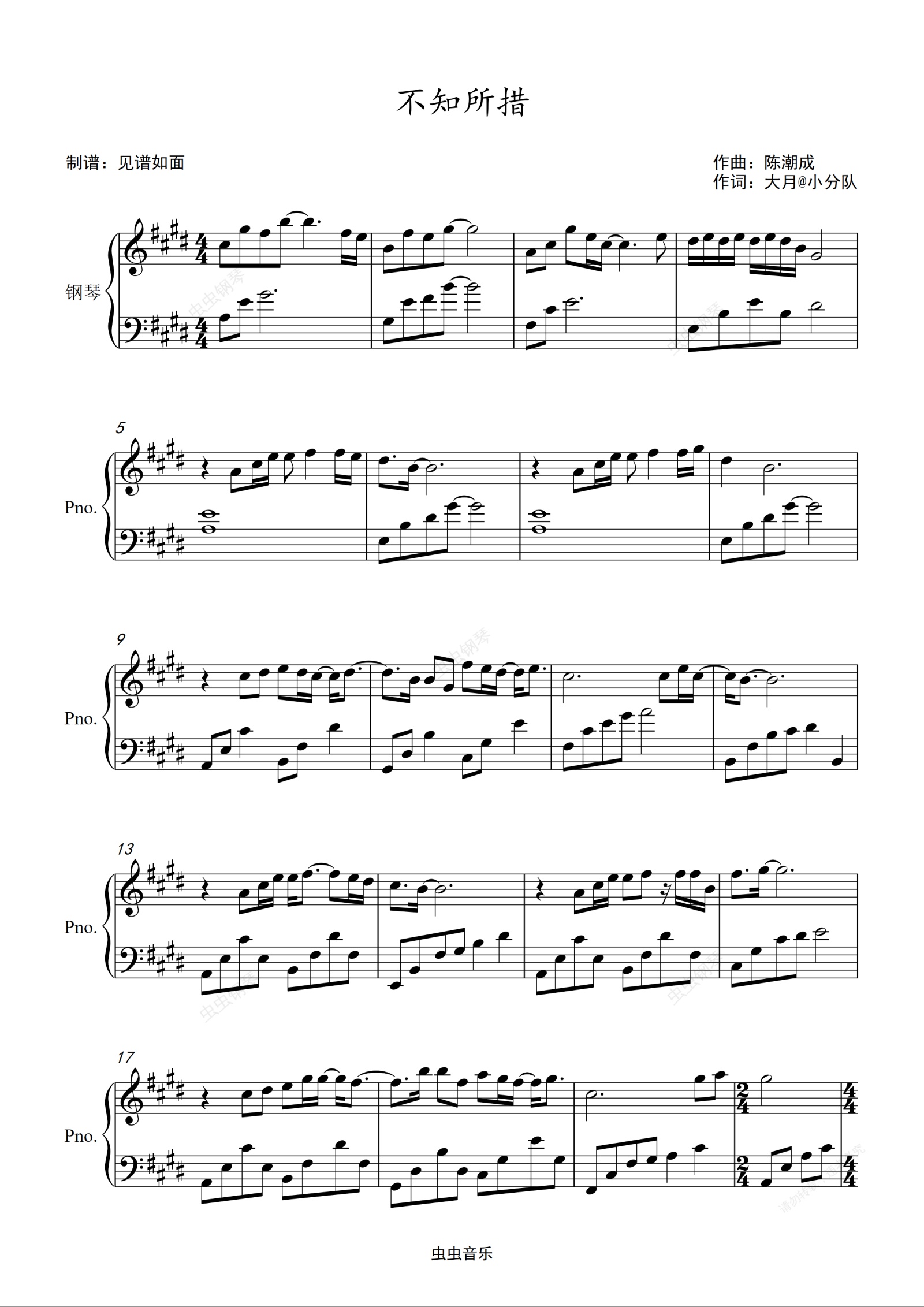 钢琴谱:不知所措—王靖雯不胖【原调初级】