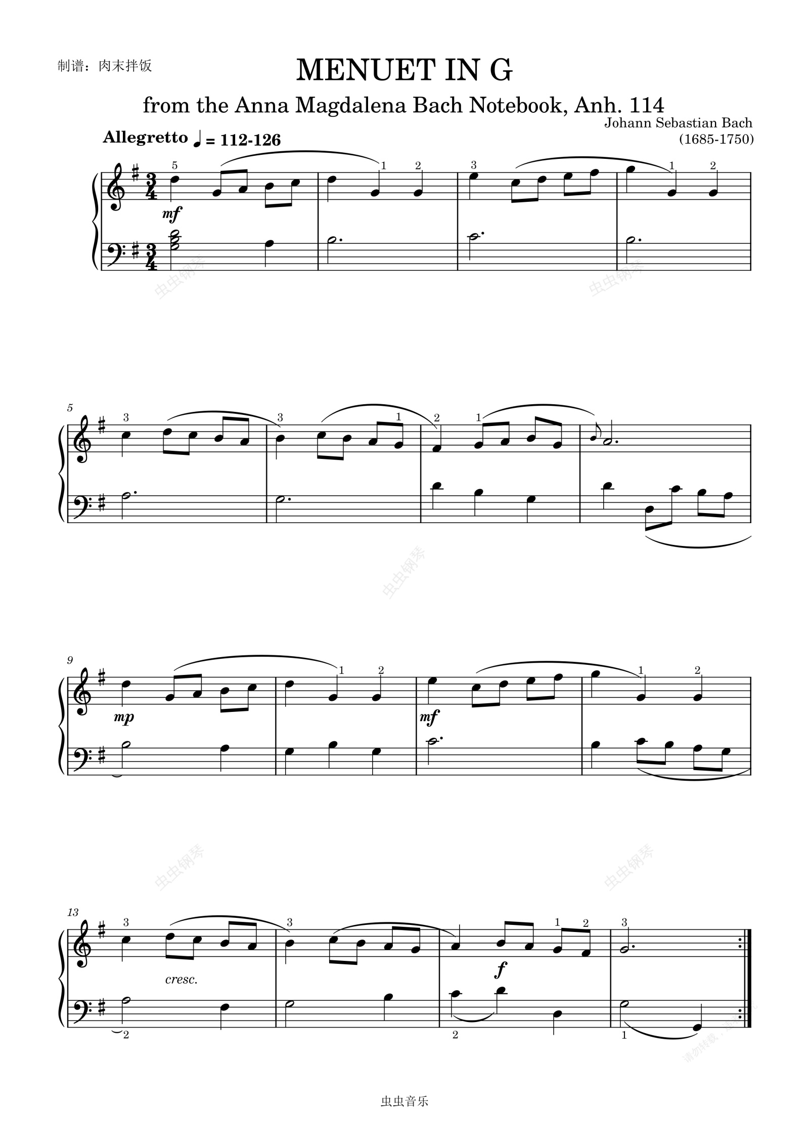 钢琴谱:G大调小步舞曲-J.S.巴赫(Johann Sebastian Bach)