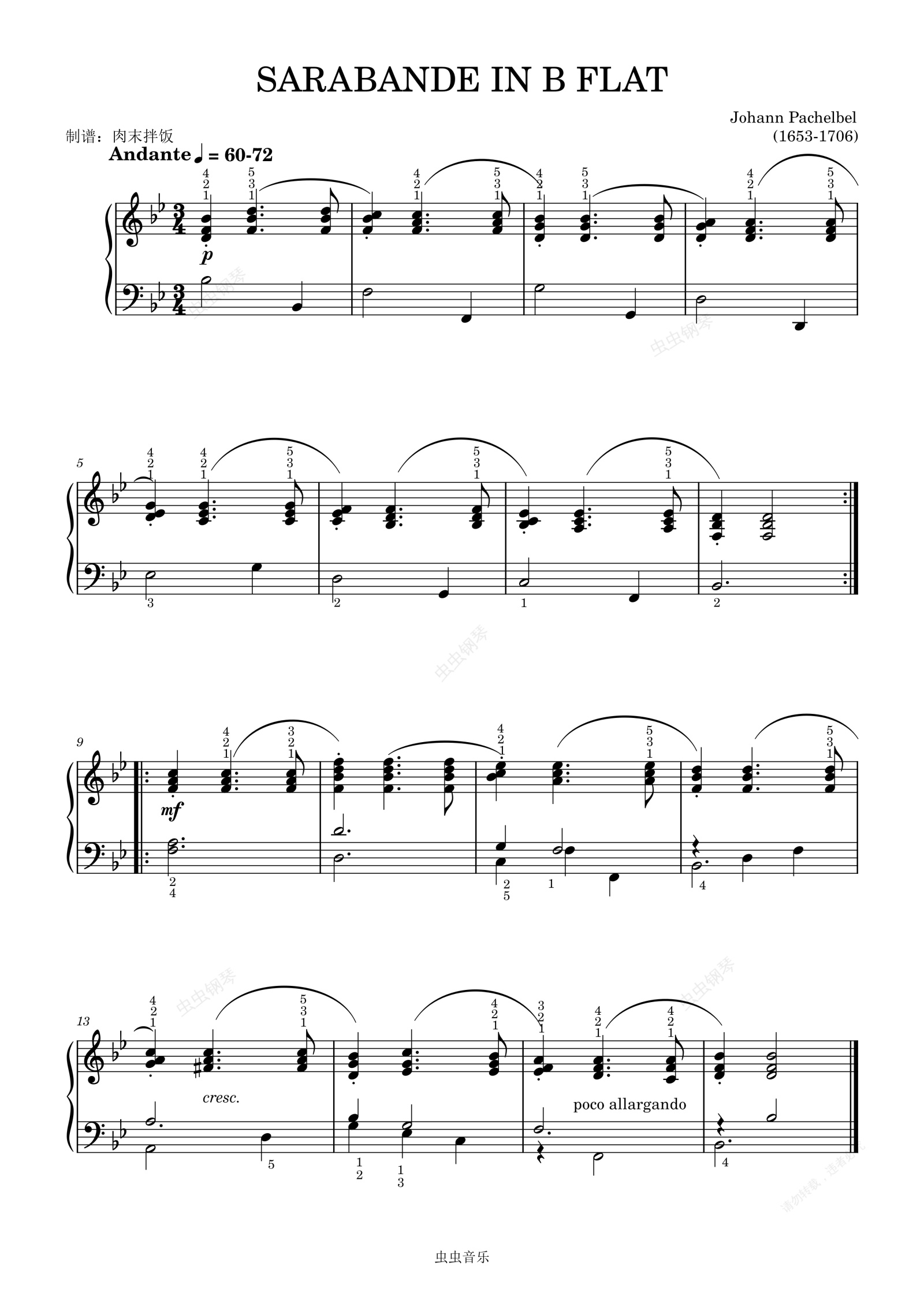 钢琴谱:降B调萨拉班德-约翰-帕赫贝尔(Johann Pachelbel )