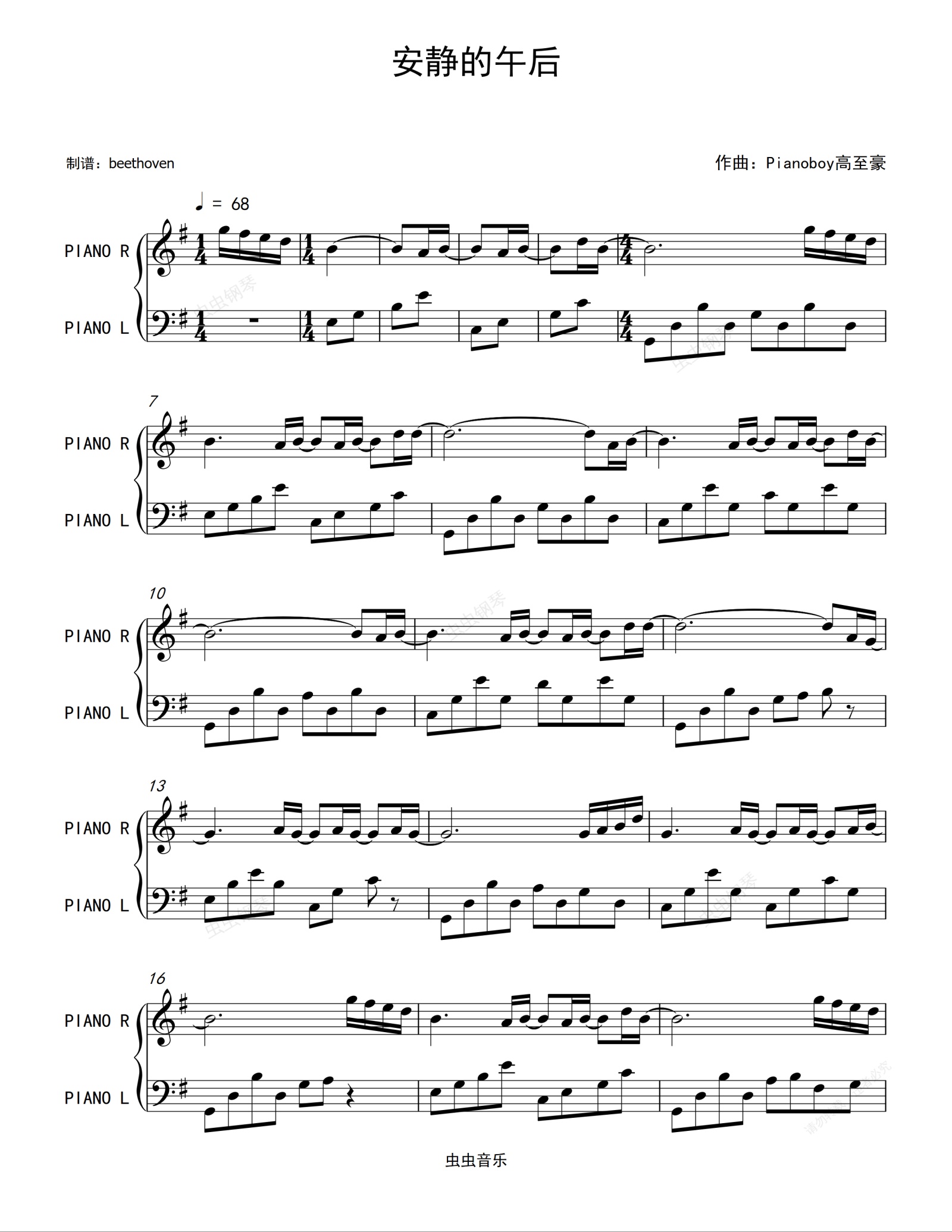 钢琴谱:安静的午后-钢琴独奏-高至豪