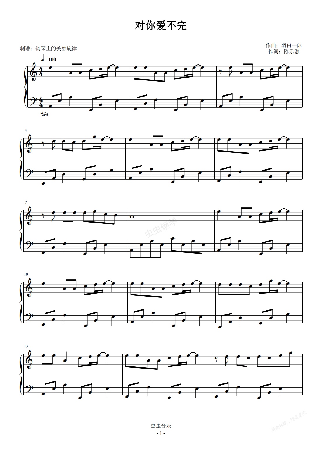 钢琴谱:对你爱不完 c调简易版 郭富城