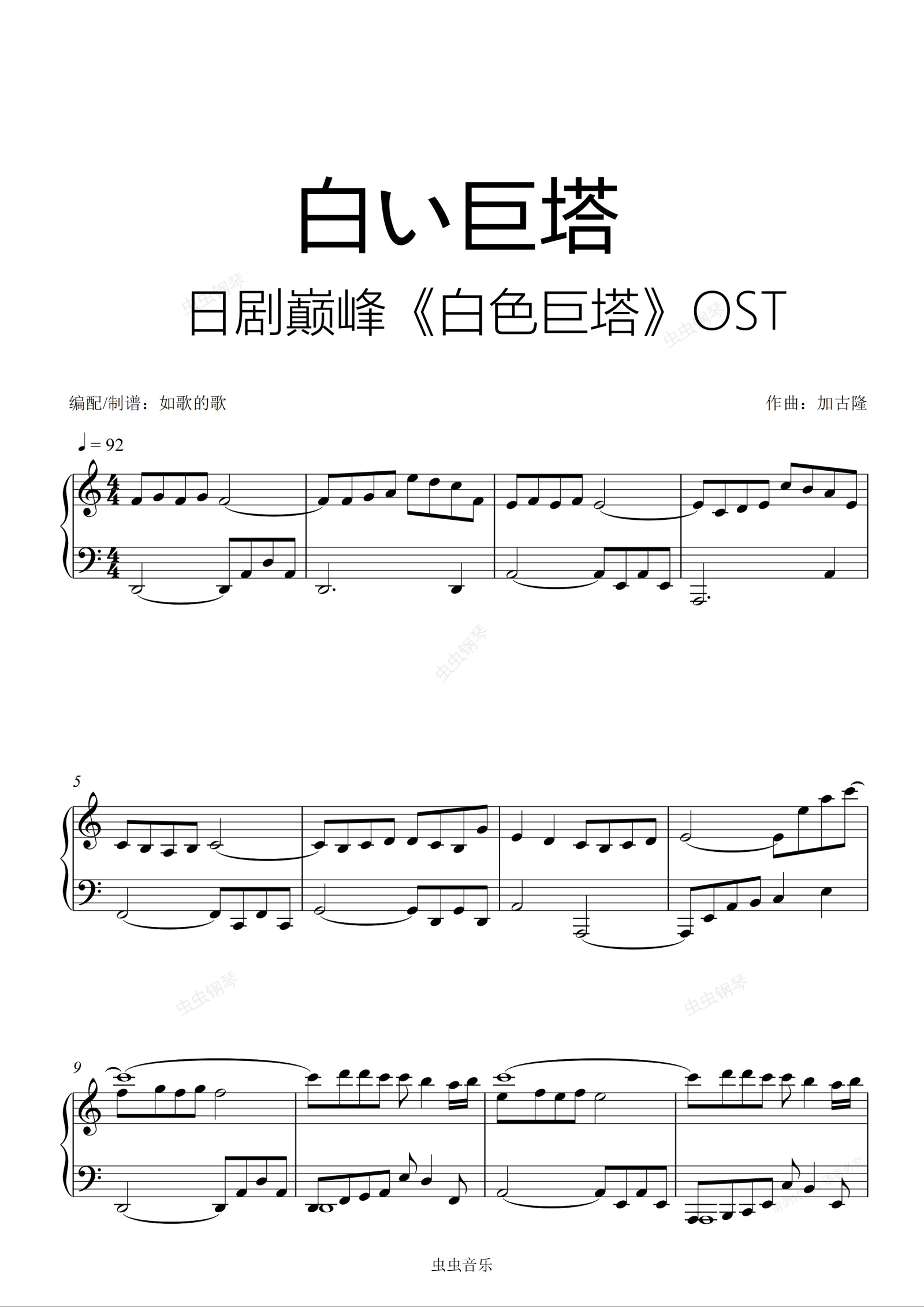 钢琴谱:白色巨塔/白い巨塔—日剧巅峰之作2003版同名OST