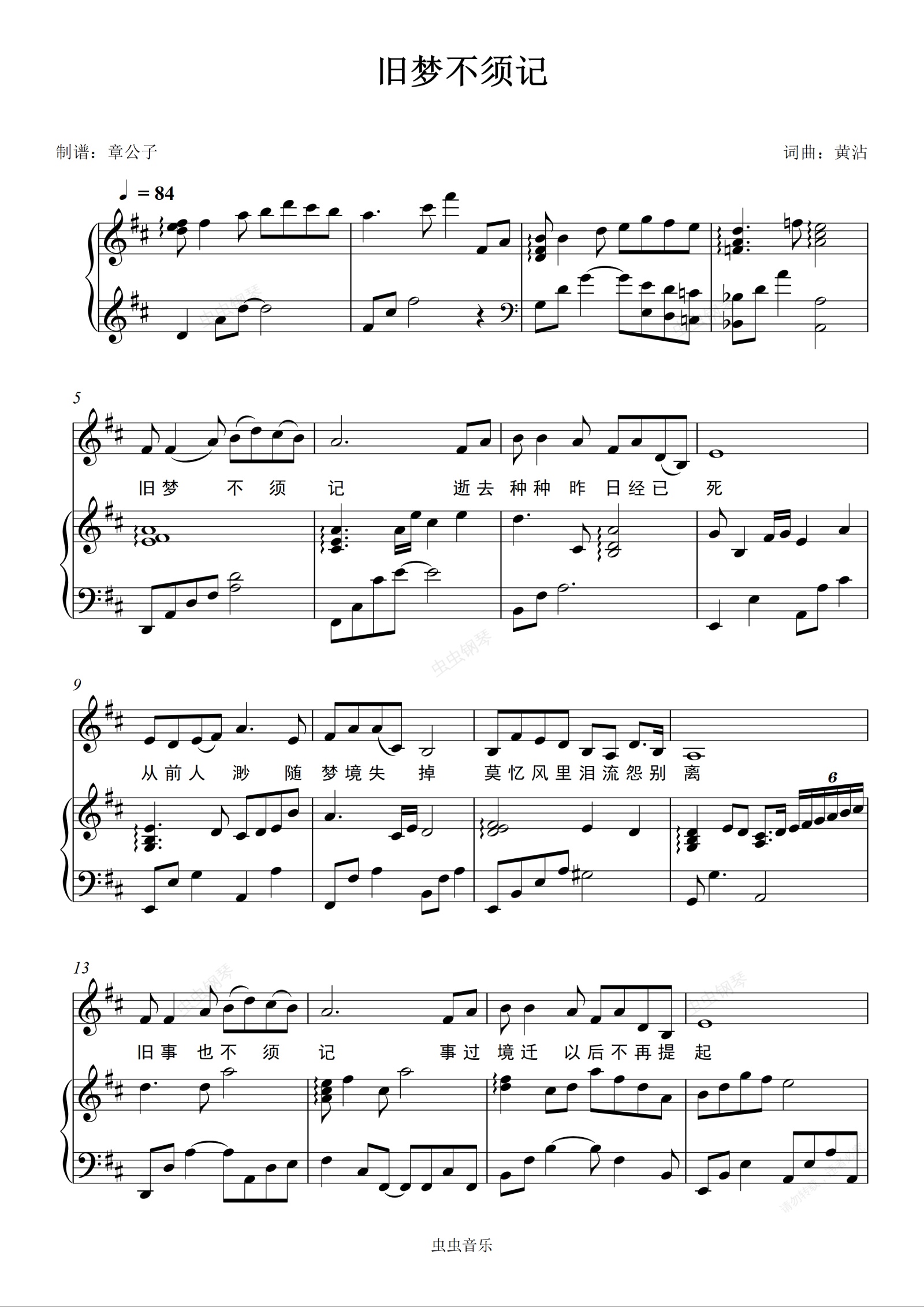 钢琴谱:《旧梦不须记》根据张伟文版编配 弹唱(伴奏)谱