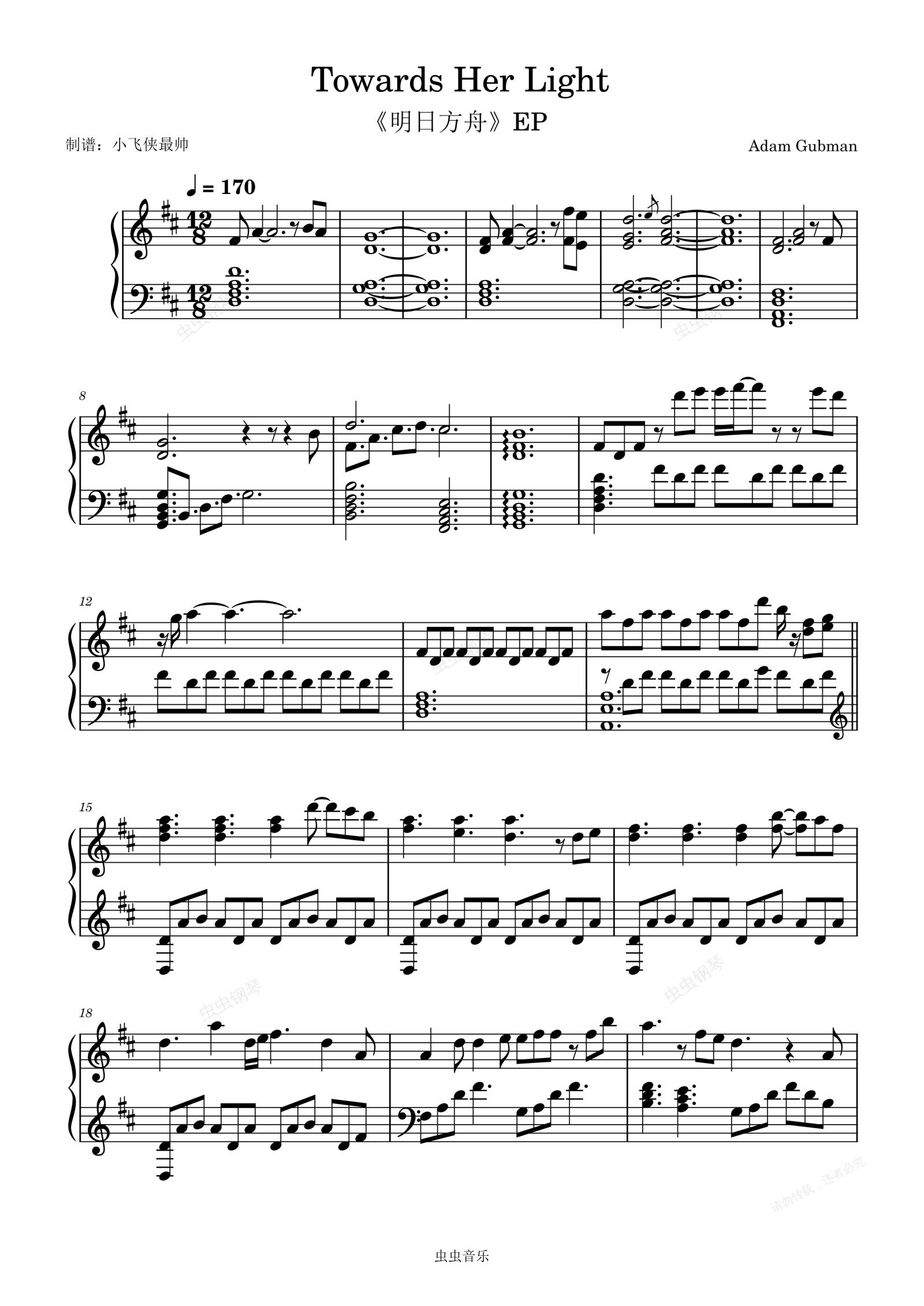 钢琴谱:Towards Her Light 《明日方舟》EP(琴柳)