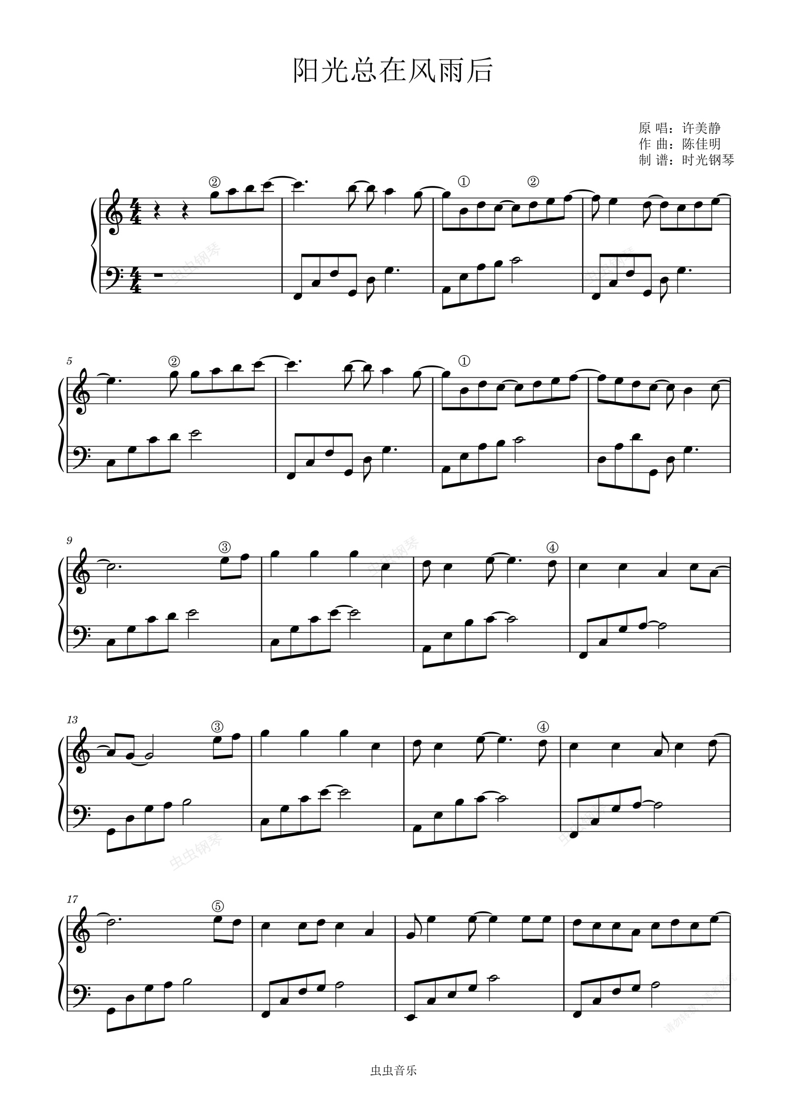 钢琴谱:阳光总在风雨后