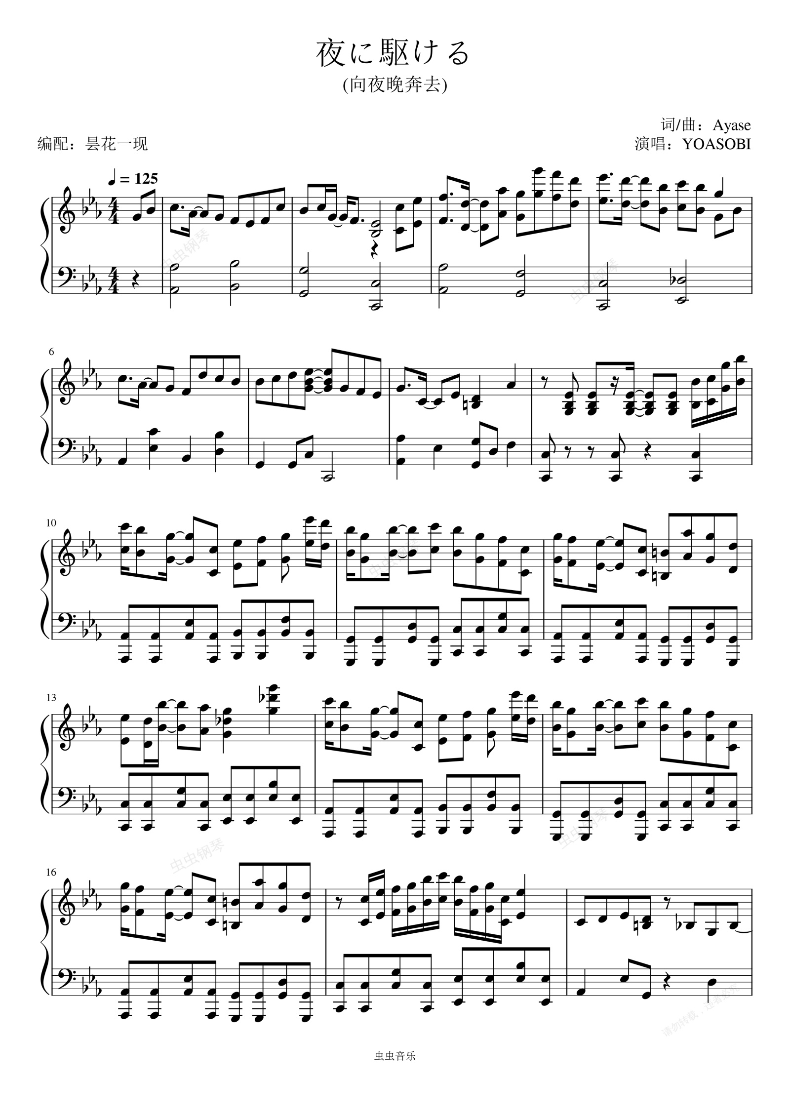 钢琴谱:夜に駆ける (向夜晚奔去)超燃版钢琴独奏改编
