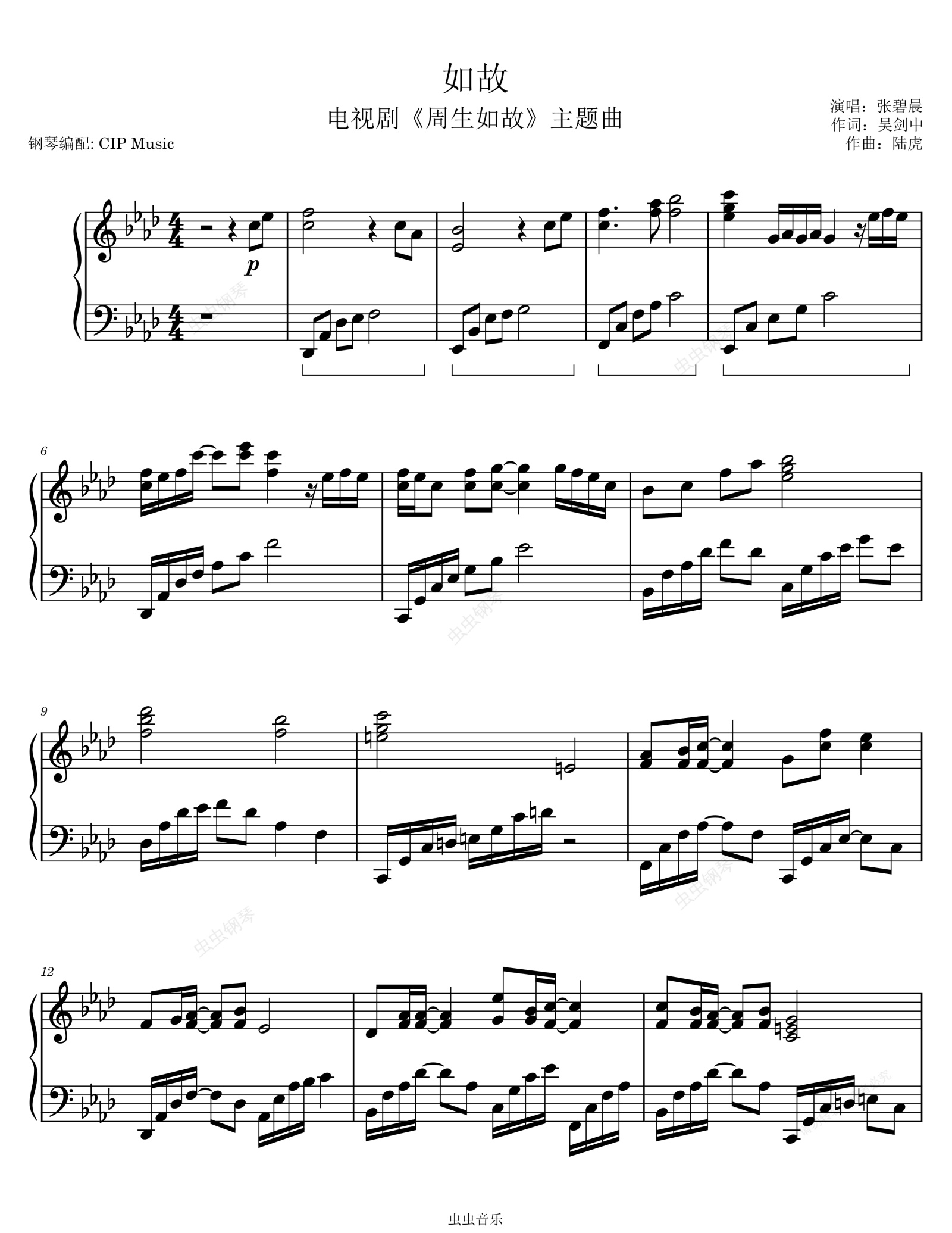 钢琴谱:《如故》原调版 - 电视剧《周生如故》主题曲