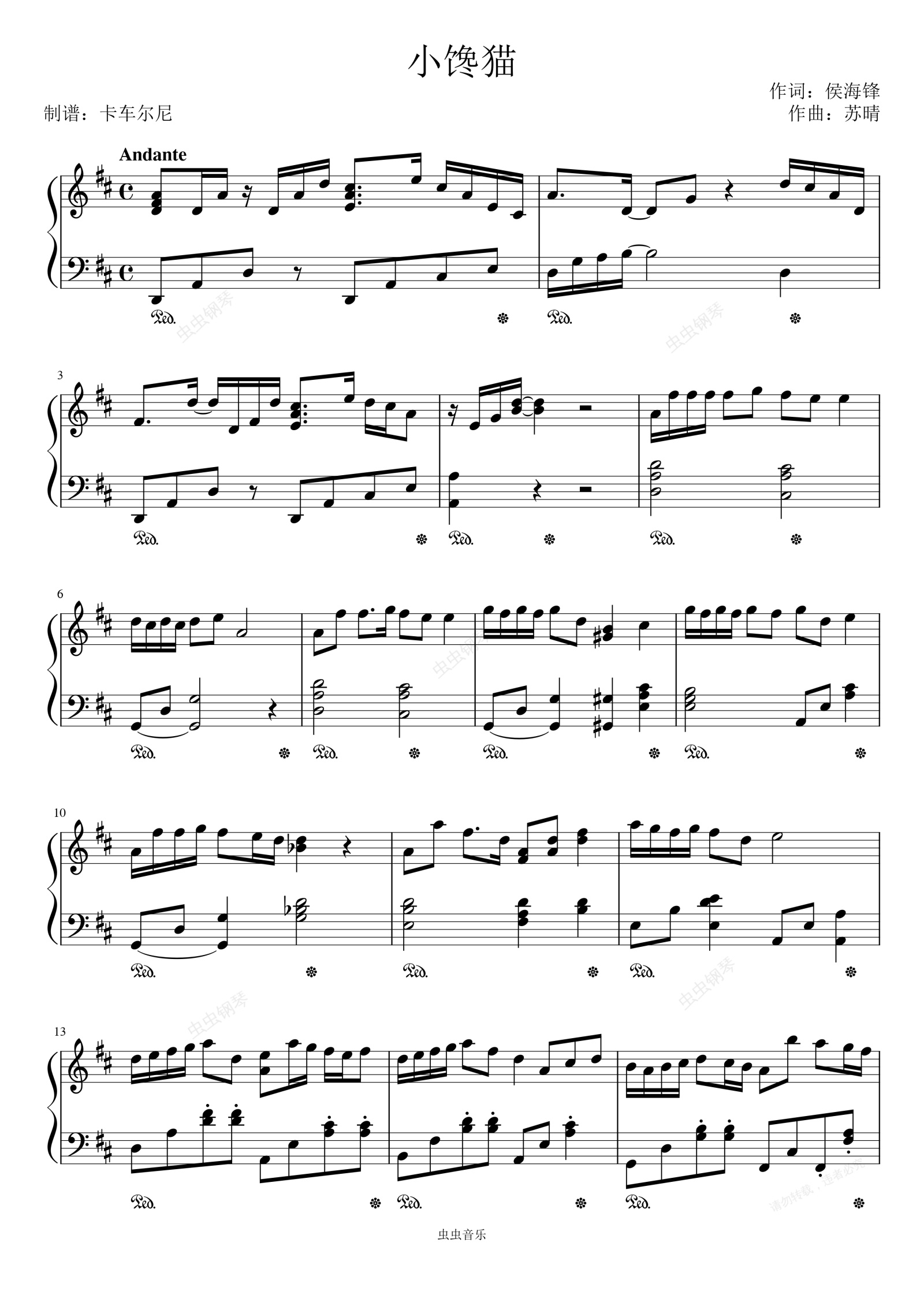 钢琴谱:抖音热曲《小馋猫》 袁鑫怡演唱
