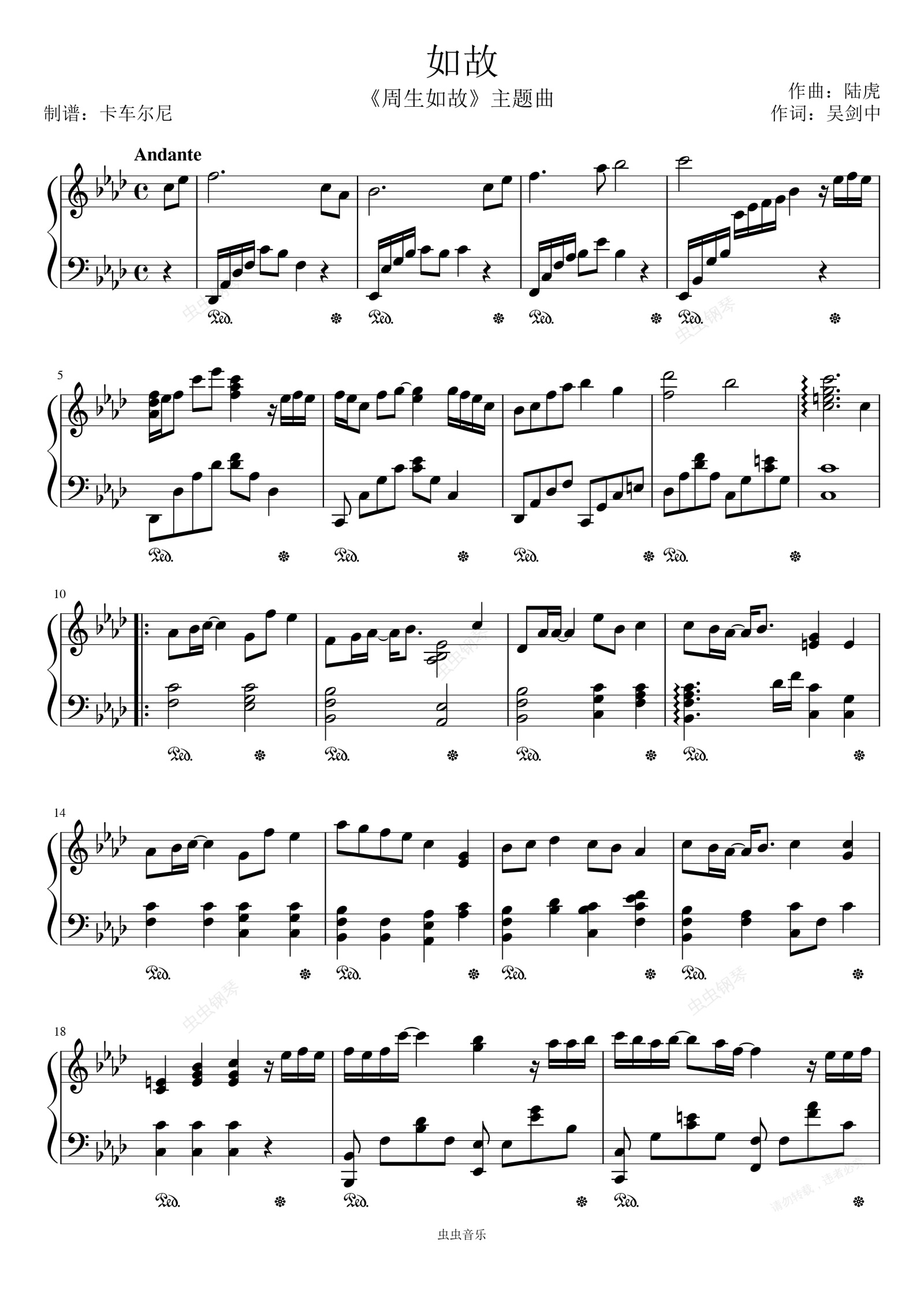 钢琴谱:张碧晨演唱《如故》精简版《周生如故》影视剧主题曲